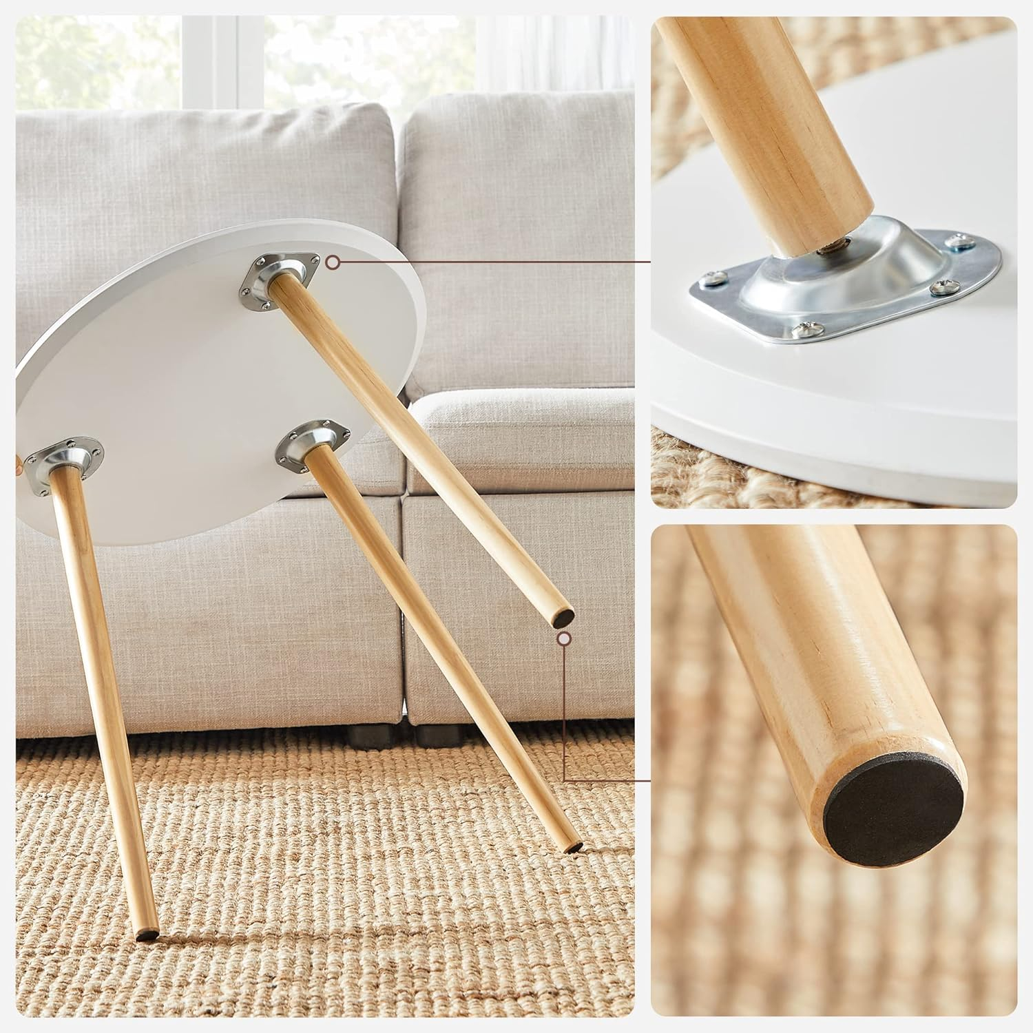 VASAGLE Masa de cafea, set de 2 bucati, picioare din lemn si blat MDF, design minimalist scandinav, 45x50cm si 35x35cm, alb