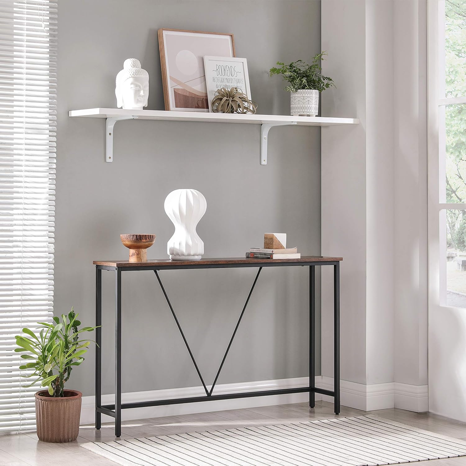 VASAGLE Masa tip consola cu cadru metalic, design industrial, 120x23x74 cm, maro rustic