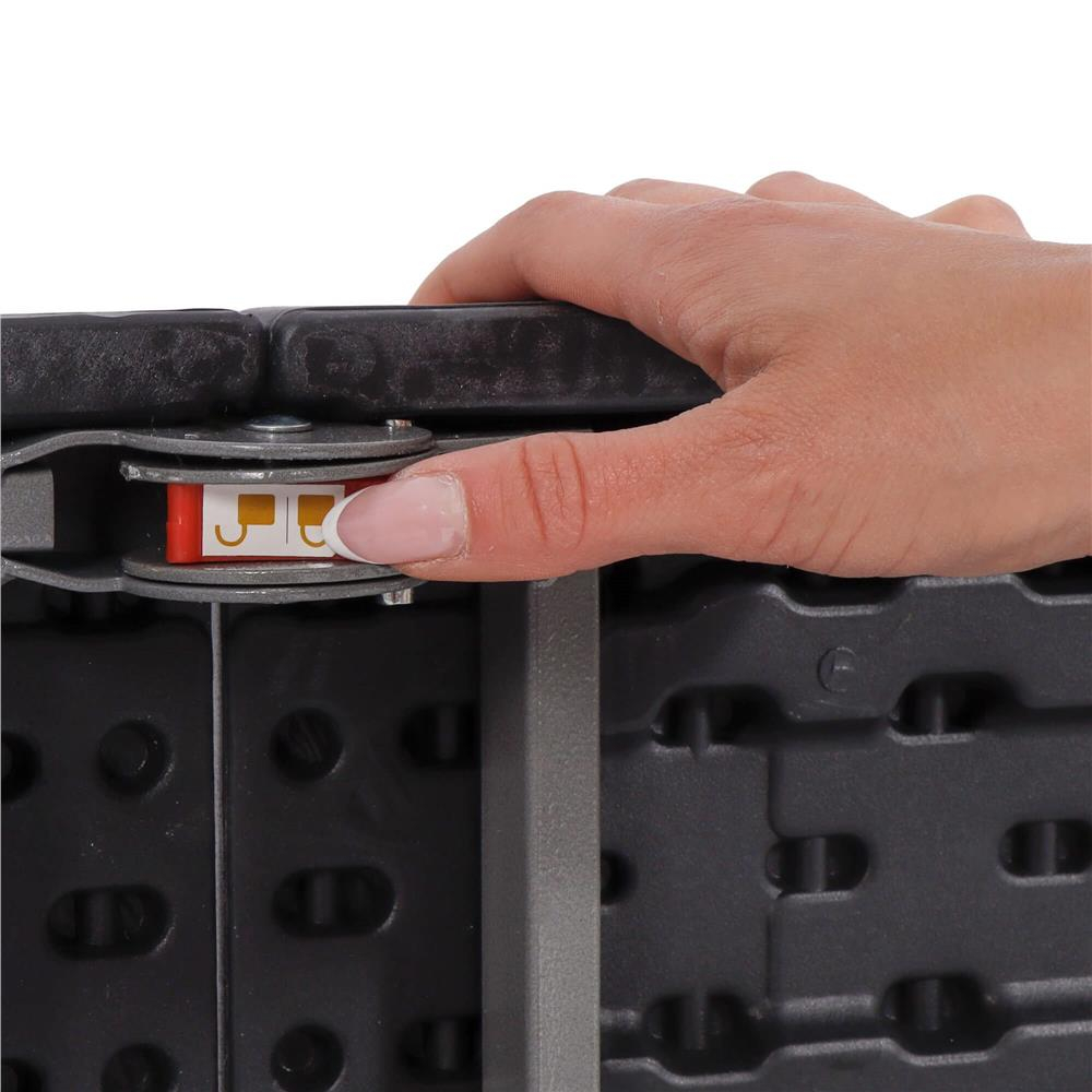 Culoarea blatului mesei: negru Finisaj: mat neted Culoarea cadrului: gri Material: HDPE, metal Dimensiuni: Dimensiunile blatului: 180x75 cm Inaltime totala: 75 cm Inaltime pana la varf: 70 cm Distanta dintre picioare: 70 cm: 140 cm si 51 cm Grosimea tuburilor cadrului: 25,5 mm, 17,5 mm Dimensiuni atunci cand este pliata: 75x90x8 cm Lungimea manerului: 12 cm Latimea curelei de la maner: 2,5 cm Masa mare de catering  cu dimensiunea de 180x75 cm este piesa ideala pentru orice eveniment, banchet sau excursie turistica in familie. Datorita faptului ca poate fi pliata sub forma de valiza, o puteti muta in mod convenabil literalmente oriunde. Pana la sase persoane vor incapea la masa, permitandu-va sa petreceti timp cu cei dragi. In plus, are un maner care faciliteaza mutarea ei in orice locatie dorita. Astfel, este usor sa va deplasati cu masa si sa o desfasurati rapid in locatia dorita. Dimensiunea mesei este ideala pentru sase persoane Grosimea blatului de masa de aproximativ 4 cm Blat de masa gros si solid, cu o capacitate de incarcare de pana la 150 kg Componente antiderapante la capatul picioarelor Mecanism de blocare pentru a impiedica rabatarea mesei Masa pliabila pana la dimensiunea unei valize Maner de transport confortabil pentru masa pliata Blatul masutei de calatorie este gros, solid si are margini rotunjite. Fabricat din materiale de cea mai buna calitate, acesta garanteaza o capacitate de incarcare de pana la 150 kg. Este de remarcat faptul ca materialul HDPE special selectat ales pentru blatul mesei este rezistent la conditiile meteorologice schimbatoare. Pentru a asigura cea mai mare siguranta posibila, masa a fost dotata cu o incuietoare. Datorita incuietoarei, nu trebuie sa va faceti griji cu privire la stabilitatea produsului odata ce masa este desfacuta.