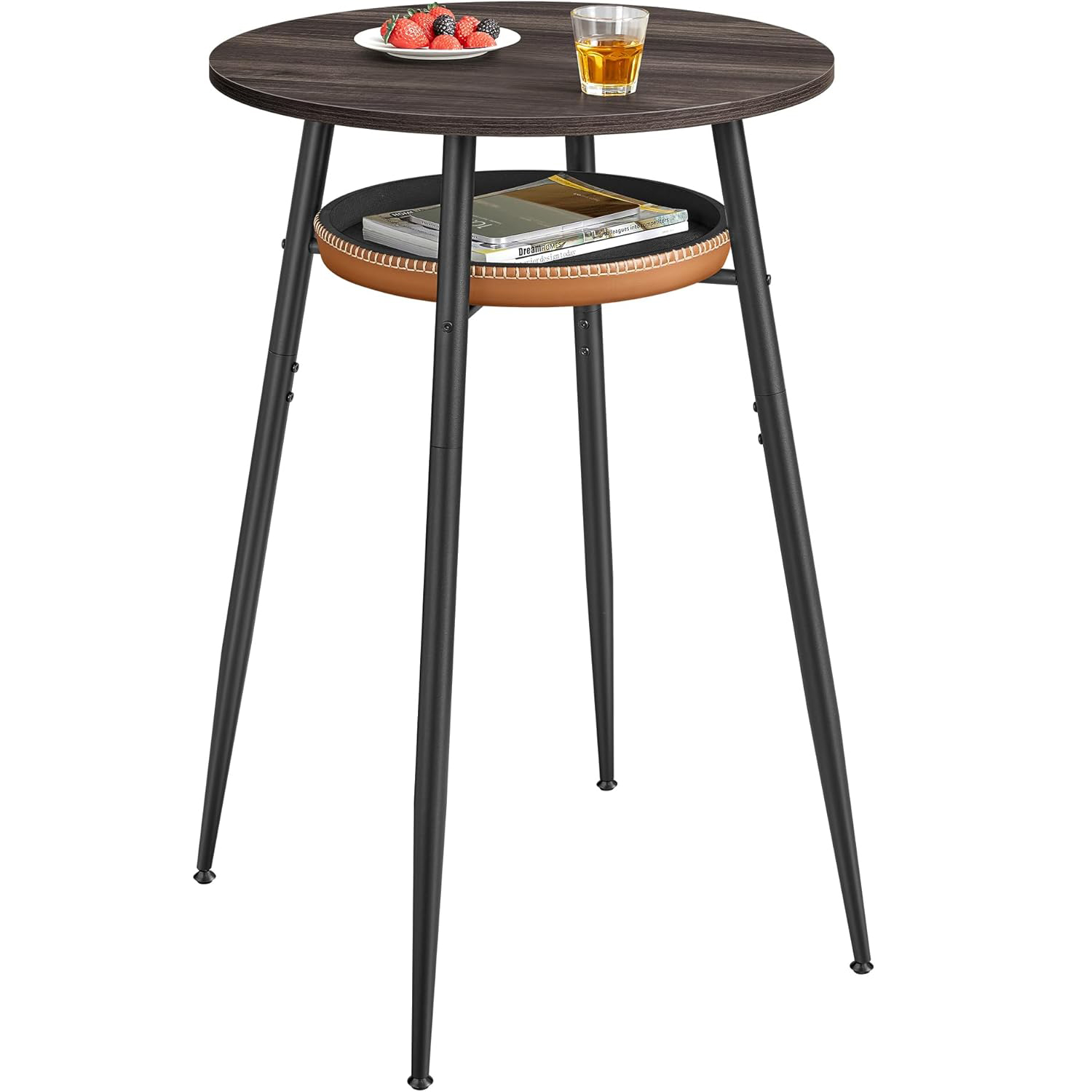 VASAGLE Masa de bar maro, 70x70x91 cm – design elegant cu piele artificiala, blat 60 cm, stabila si usor de asamblat