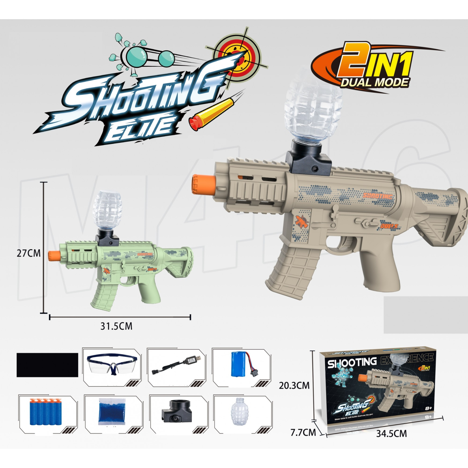 Pistol electric 2 in 1 cu bile de hidrogen de gel si sageti cu ventuze de spuma, ochelari de protectie, 5000 de bile incluse, cablu de incarcare, 27x31.5 cm, Mp9, crem
