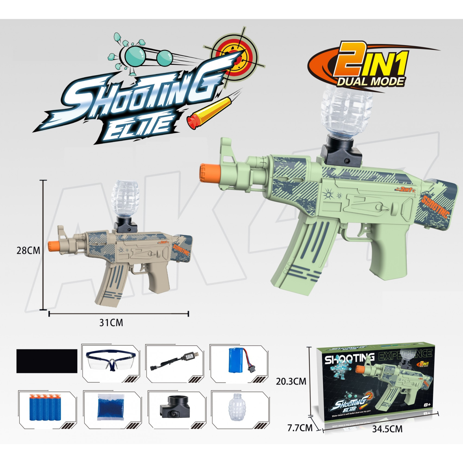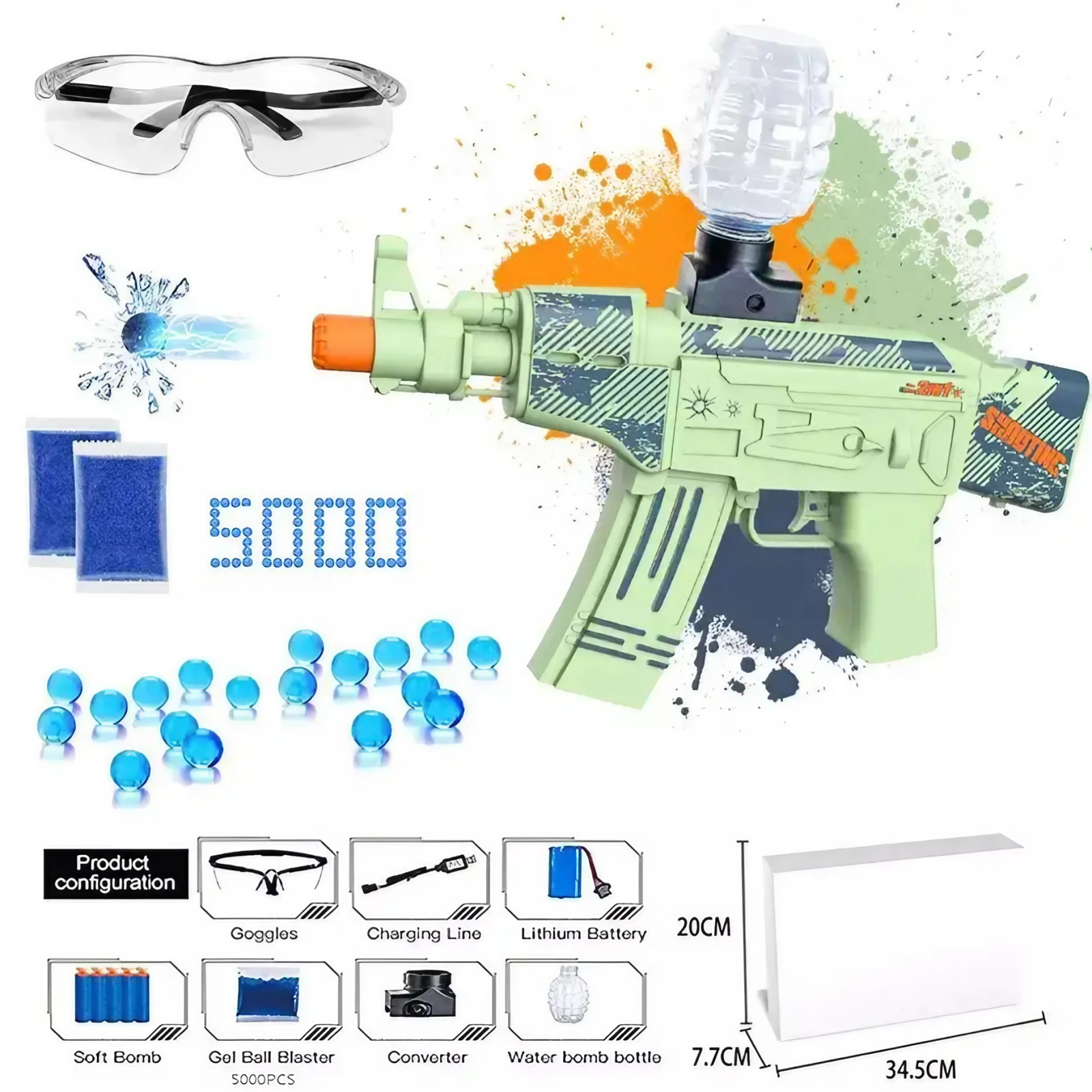 Pistol electric cu bile de hidrogen de gel, ochelari de protectie, 5000 de bile incluse, cablu de incarcare, 28x31 cm, AK47, verde