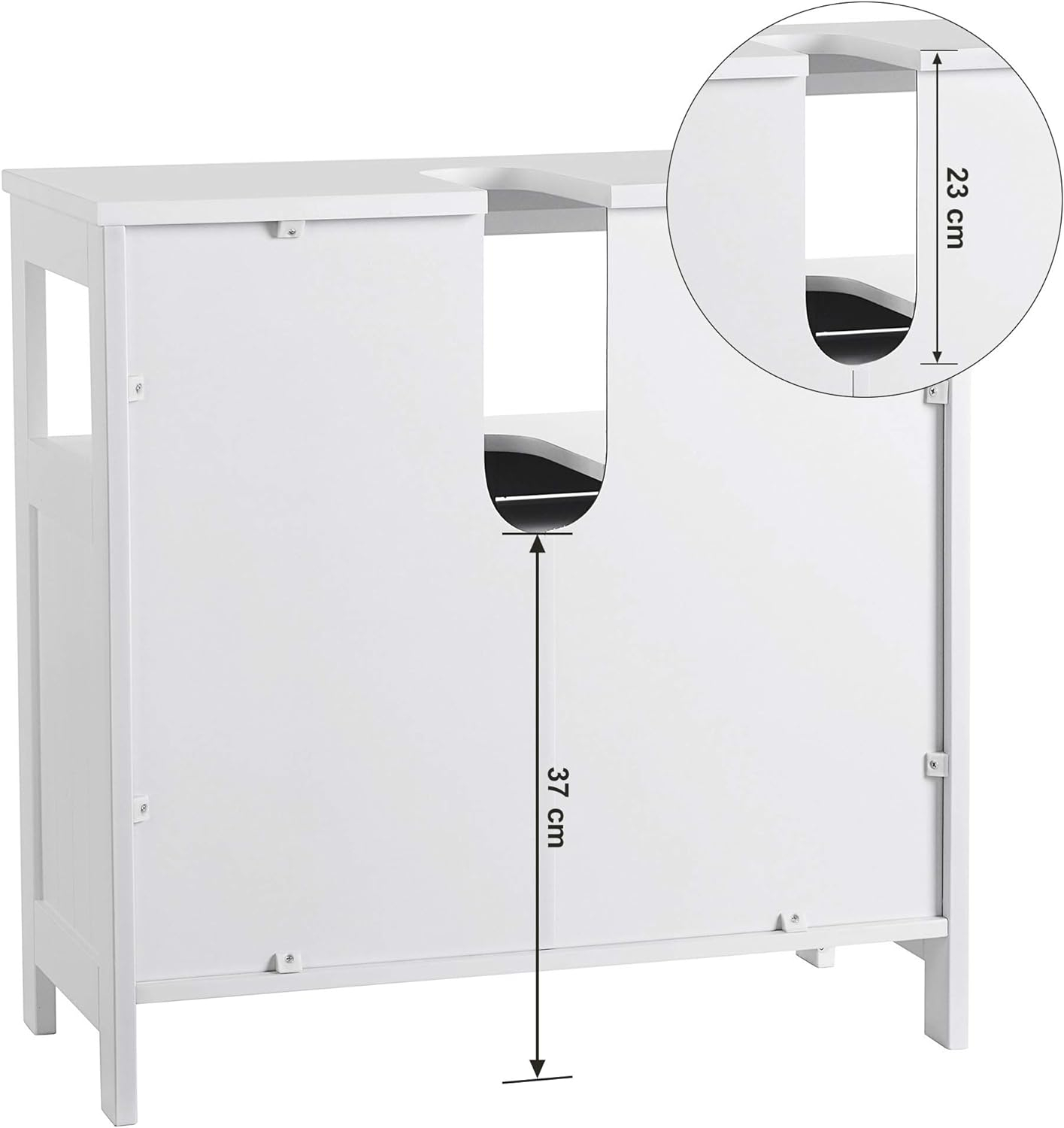 Marca: VASAGLE Culoare: alb Dimensiuni produs: 30D x 60L x 60H cm Caracteristica speciala interior Material pe baza de lemn Despre acest articol Ofera mult spatiu de depozitare. Material rezistent la umezeala, de asemenea usor de curatat - Dulapul de perete este fabricat din carton MDF (clasa E1), suprafata tratata cu lac, rezistent la umezeala si mucegai, de asemenea usor de curatat.Face asamblarea usoara - instructiunile grafice detaliate va ghideaza pas cu pas in realizarea dulapului de chiuveta, piesele individuale sunt atribuite cu litere, astfel incat sa nu existe confuzii. Partea de sus: 1 compartiment deschis (dimensiuni interioare: 56 x 19 x 28 cm (L x ih x ih) pentru depozitarea usor accesibila a ustensilelor utilizate frecvent; Partea inferioara: 1 compartiment opac in spatele usilor (dimensiuni interioare: 56 x 30,5 x 28 cm L x H x P), prosoapele de mana, hartia igienica si alte accesoriile de baie sunt protejate de praf, apa si de privirile nedorite.2x usi cu lamele care pot fi deschise prin rotire la 180° - usile elegante cu lamele cu manere metalice transmit un stil confortabil de casa de tara, albul atemporal se potriveste cu orice stil de decor; in acelasi timp, acestea asigura o buna ventilatie si previn astfel riscul aparitiei mucegaiului si a mirosurilor de mucegai. Dimensiuni - dimensiunile taieturii sifonate: 20 x 8 cm, dimensiunile dulapului de baza: 60 x 60 x 60 x 30 cm (L x H x P), inainte de cumparare, va rugam sa masurati dimensiunea sifonului chiuvetei dvs. si spatiul disponibil sub chiuveta si sa determinati daca acest dulap se potriveste.