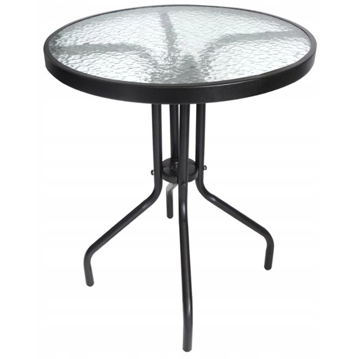 Culoare: neagra Material blat - sticla Structura mesei - otel Lungime: 60 cm Latime: 60 cm Inaltime: 70 cm Forma: rotunda O masa usoara si confortabila, perfecta pentru gradina sau balcon. Datorita structurii de otel si a blatului din sticla calita groasa, masa este stabila si durabila. Structura mobilierului din metal vopsit cu pulbere garanteaza stabilitate si durabilitate . Utilizarea culorilor negre clasice face ca produsul sa se potriveasca aproape cu orice. Formele sofisticate sunt un aspect care confera mesei lejeritate si rafinament. Blat rotund din sticla securizata - siguranta si durabilitate Constructie stabila si durabila - din metal Usor de pastrat curat Dimensiune compacta Rezistent la schimbarea conditiilor meteorologice Aspect original - relief delicat pe blat asemanator cu apa ondulata Perfect pentru un balcon, terasa sau gradina