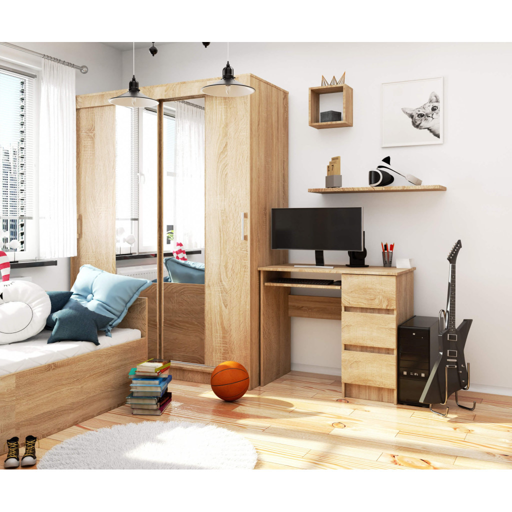 Birou computer cu 3 sertare si raft pentru tastatura, dreapta, 90x50x77 cm, stejar sonoma