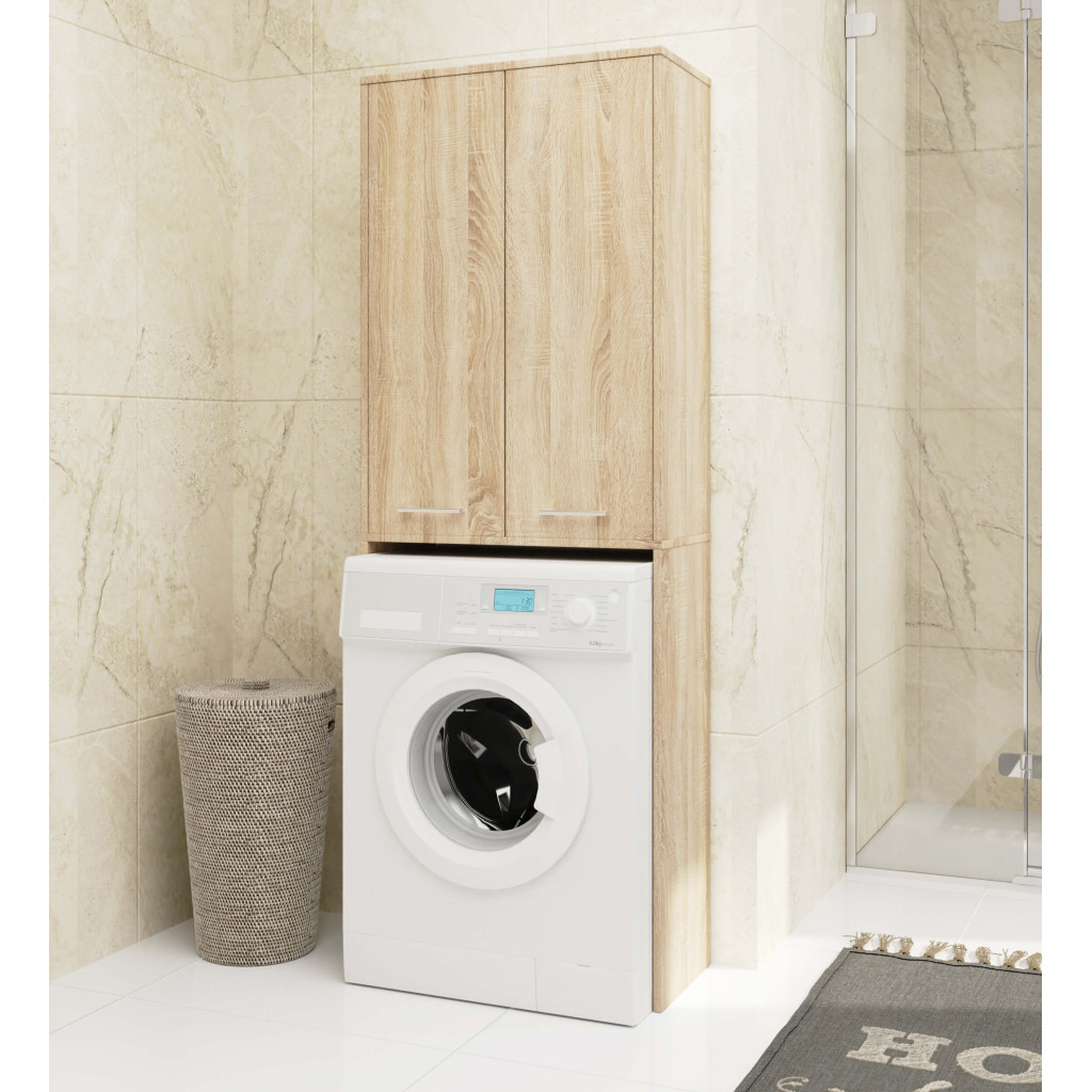 Dulap de baie cu 2 usi si 4 rafturi, pentru spatiul de deasupra masinii de spalat, 64x30x180 cm, stejar sonoma
