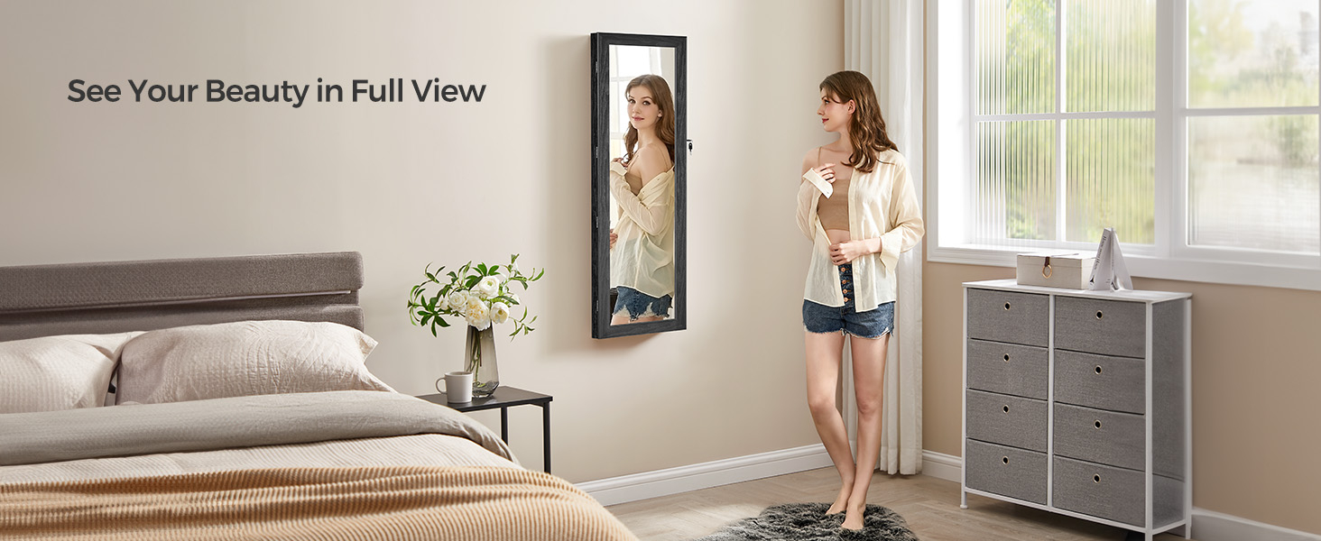 SONGMICS Dulap de bijuterii cu oglinda, din MDF, montare pe perete, 37x10x120 cm, negru