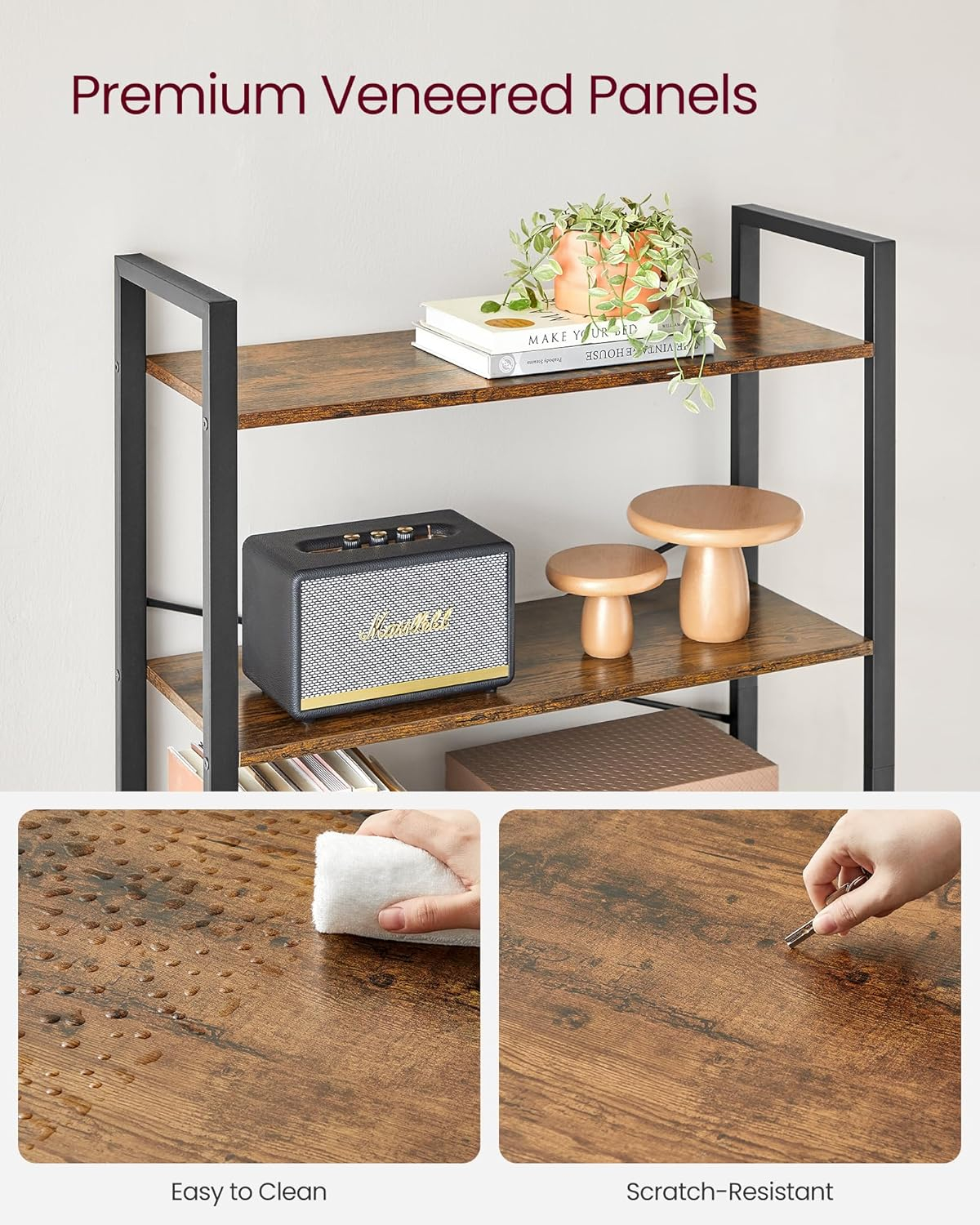 VASAGLE Biblioteca cu 6 rafturi, etajera stil industrial, PAL si cadru metalic, 30x80x186 cm, maro rustic