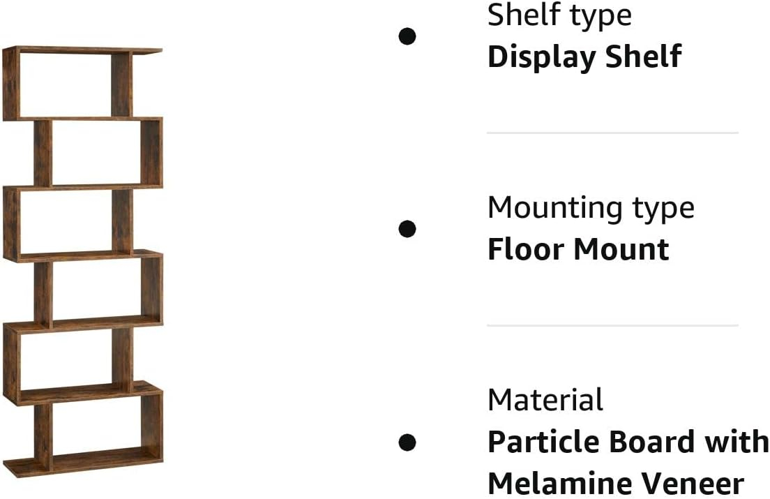 VASAGLE Biblioteca, raft cu 6 unitati de depozitare, pentru living, din lemn, 24x190x70cm, maro rustic