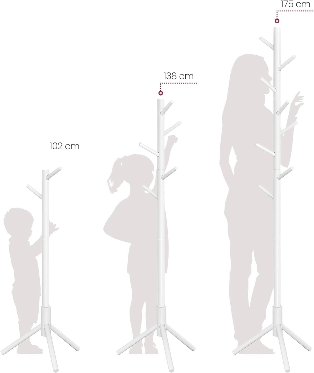 VASAGLE Cuier pentru haine, din lemn masiv, tip pom, cu 8 carlige, 175cm, alb