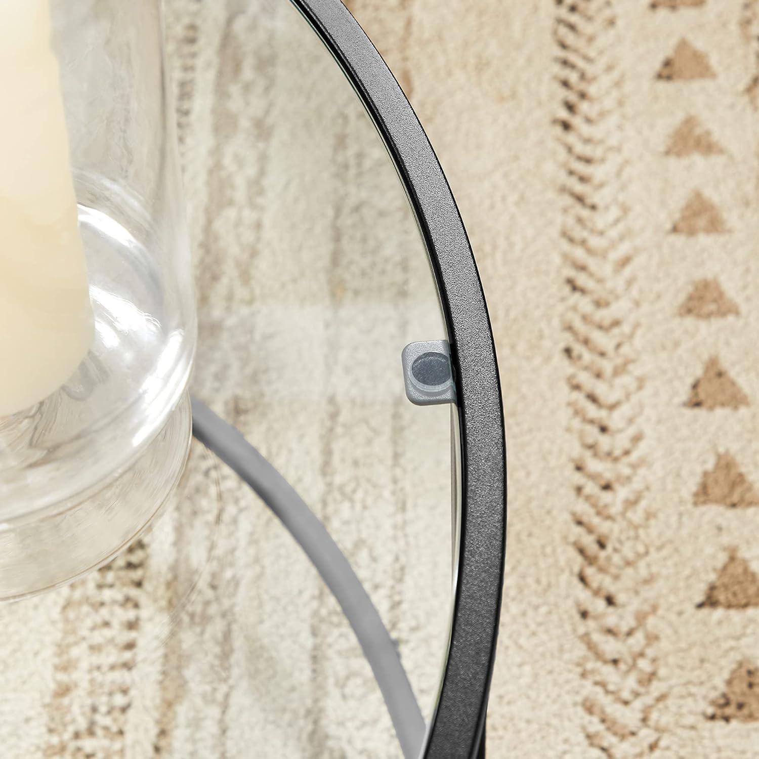 VASAGLE Masa de cafea rotunda, din sticla securizata cu cadru metalic, 84x84x45cm, negru