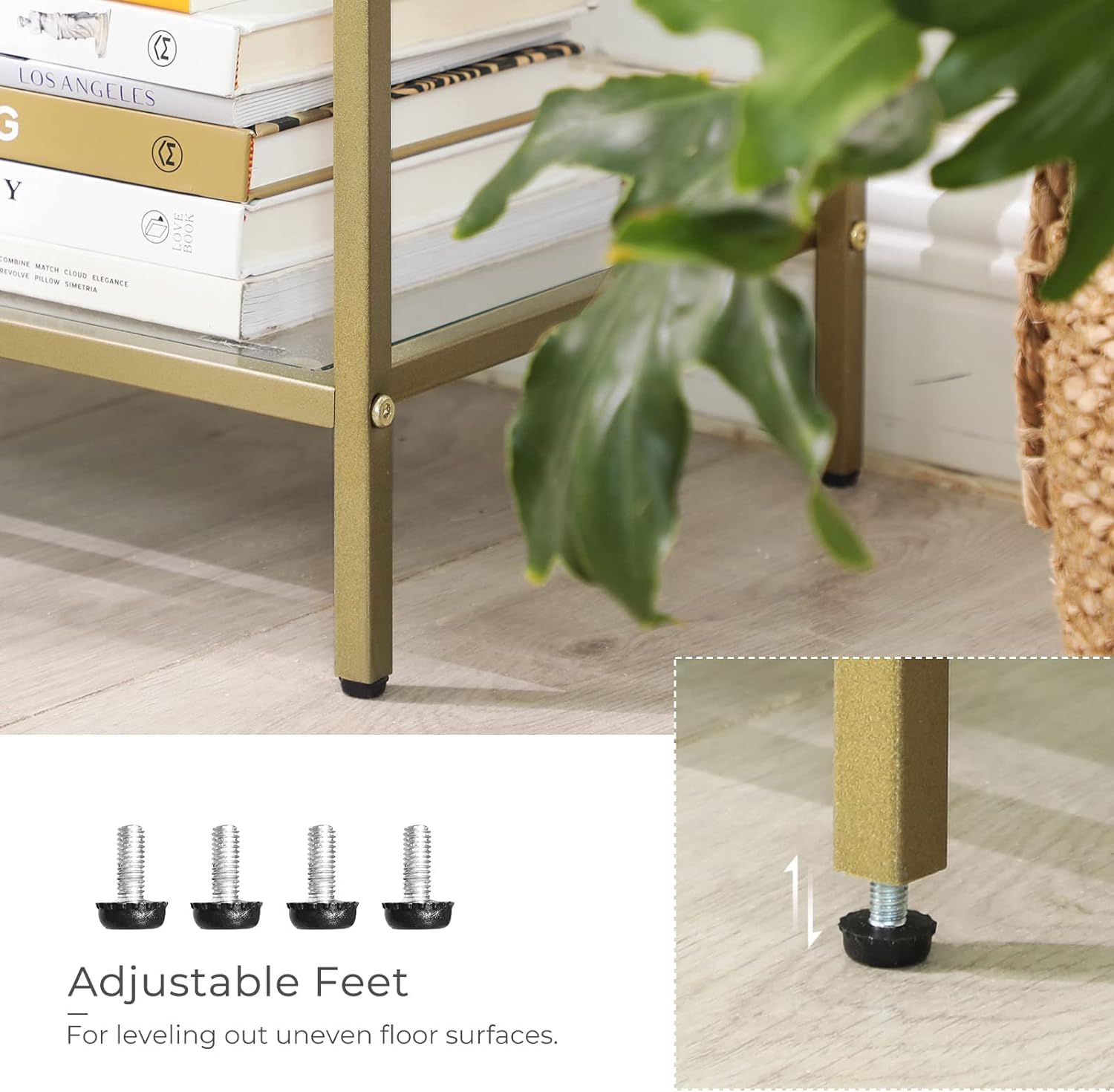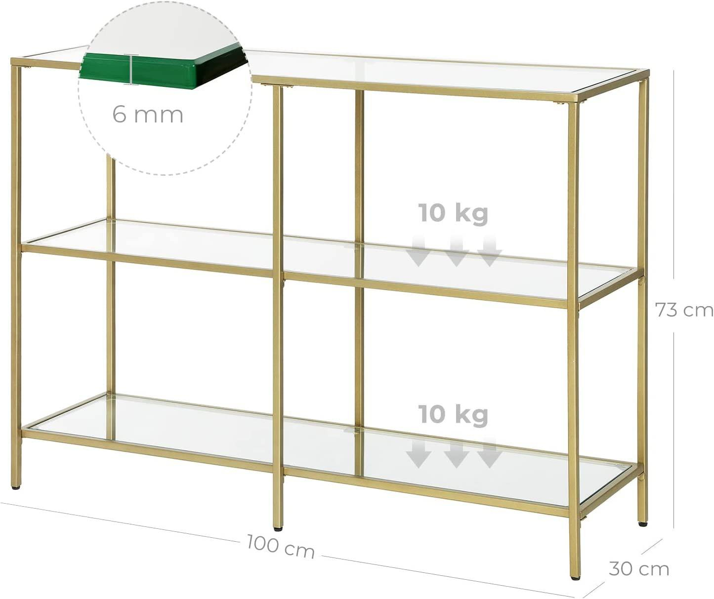 VASAGLE Masa de intrare, pe 3 nivele, blat din sticla securizata, cadru metalic, 30x100x73cm, auriu