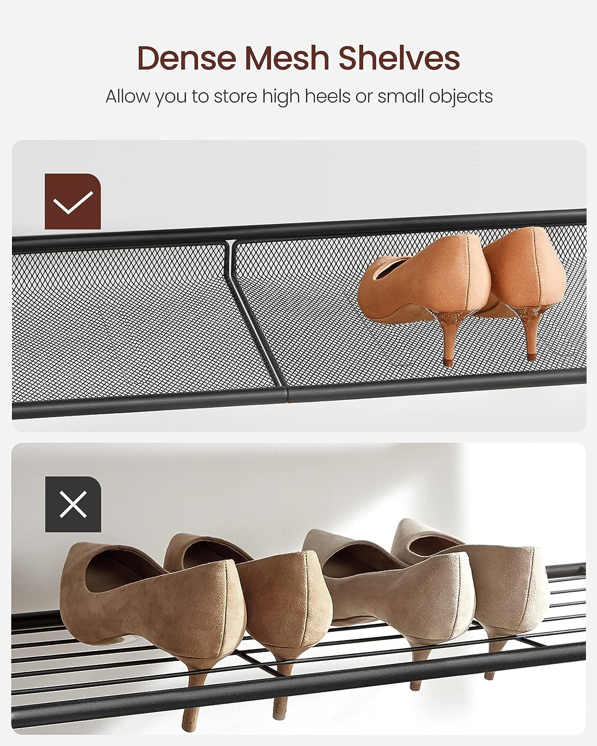VASAGLE Raft de pantofi, 5 niveluri, rafturi reglabile din plasa, metal, stil industrial, 75x28x93cm, maro vintage negru