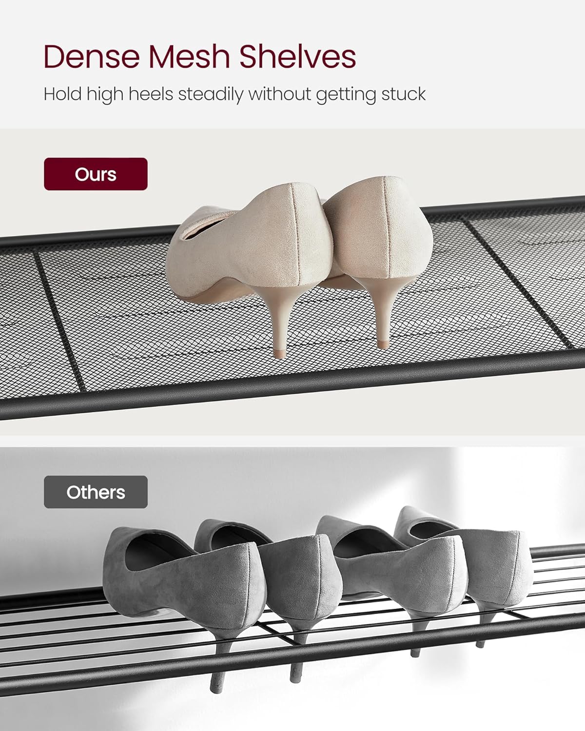 VASAGLE Raft de pantofi, cu 4 rafturi din plasa, cadru din otel, industrial, 30x100x92cm, maro rustic si negru
