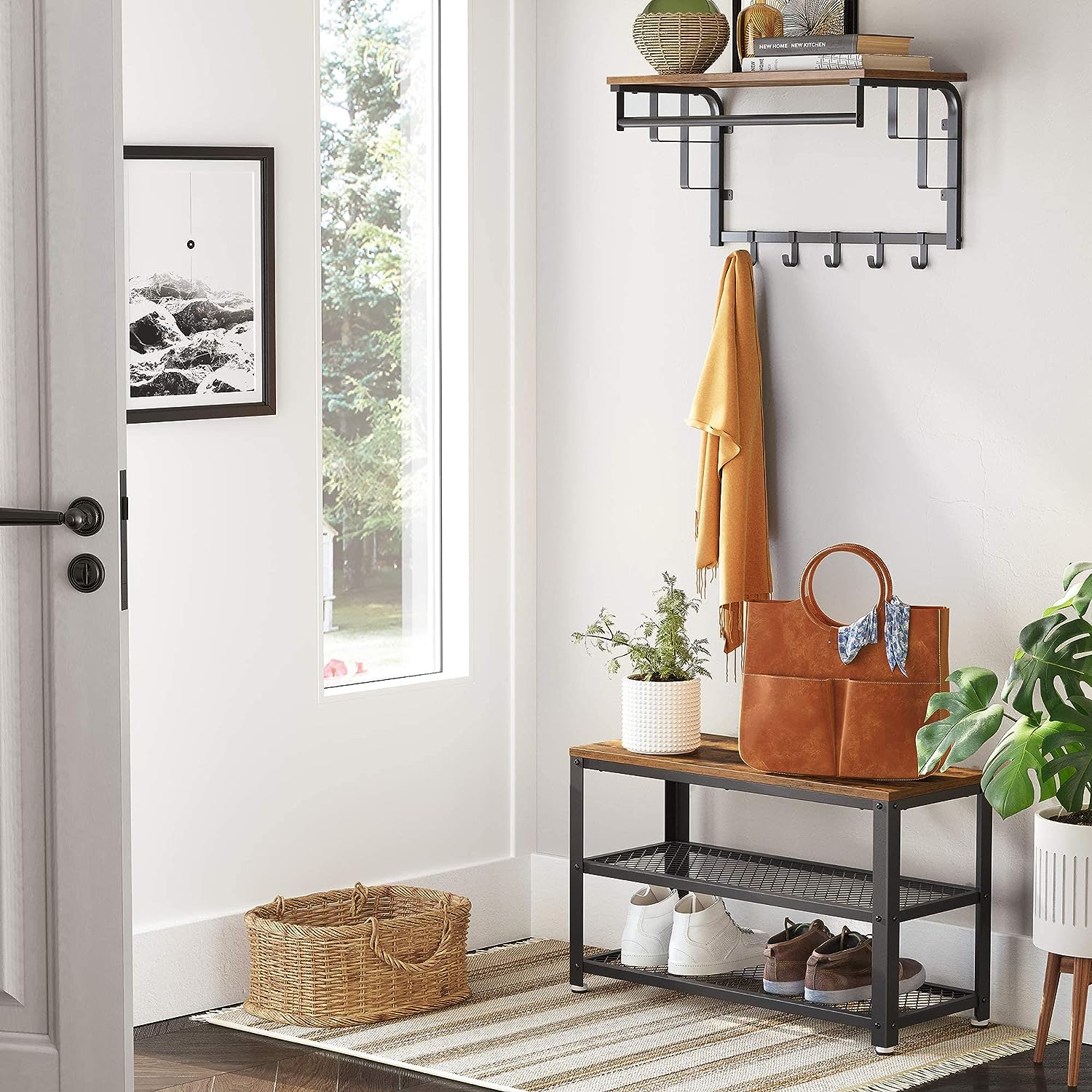 Dimensiuni produs 30D x 73L x 45H centimetriCuloare maro rustic + negruDimensiuni 73 x 30 x 45 cmFinisaj mobilier din otel aliatMaterial Placi aglomerate, otelMaterial cadru Aliaj de otelStil RusticGreutatea articolului 6,8 Kilograme Despre acest articol Bine ati venit acasa: Nu lasati o intrare goala si plictisitoare sa va astepte de indata ce treceti pragul. Adaugati aceasta banca pentru pantofi cu panouri calde de culoare maro rustic si o structura din otel negru, agatati un cuier deasupra ei, iar intrarea dvs. va avea o alta aromaMai lung, mai mare, mai ordonat: Datorita lungimii de 73 cm, cele 2 rafturi sunt suficient de spatioase pentru a organiza 6-8 perechi de pantofi. De asemenea, va puteti lasa geanta de lucru si alte accesorii pe raftul de sus si puteti crea o intrare ordonataConstruita pentru a rezista: Realizata dintr-un cadru robust din otel si placi aglomerate, banca robusta pentru pantofi suporta pana la 90 kg; asa ca de ce sa nu luati loc si sa stati confortabil in timp ce va legati pantofii sau asteptati ca ceilalti sa se pregateasca?Descarcati-va grijile: Nu va pricepeti la asamblare? Nu e mare lucru. Am impachetat un duo - piese numerotate si instructiuni usor de urmat - pentru a va ajuta sa o terminati pas cu pas. Urmati-le si veti admira noua dvs. banca de pantofi inainte sa va dati seamaCe primiti: O banca pentru pantofi cu 2 rafturi din plasa, instructiuni ilustrate, o punga de asamblare si un design fascinant din colectia BRYCE de la VASAGLE, pentru a da o nota moderna intrarii, livingului si dormitorului dvs.