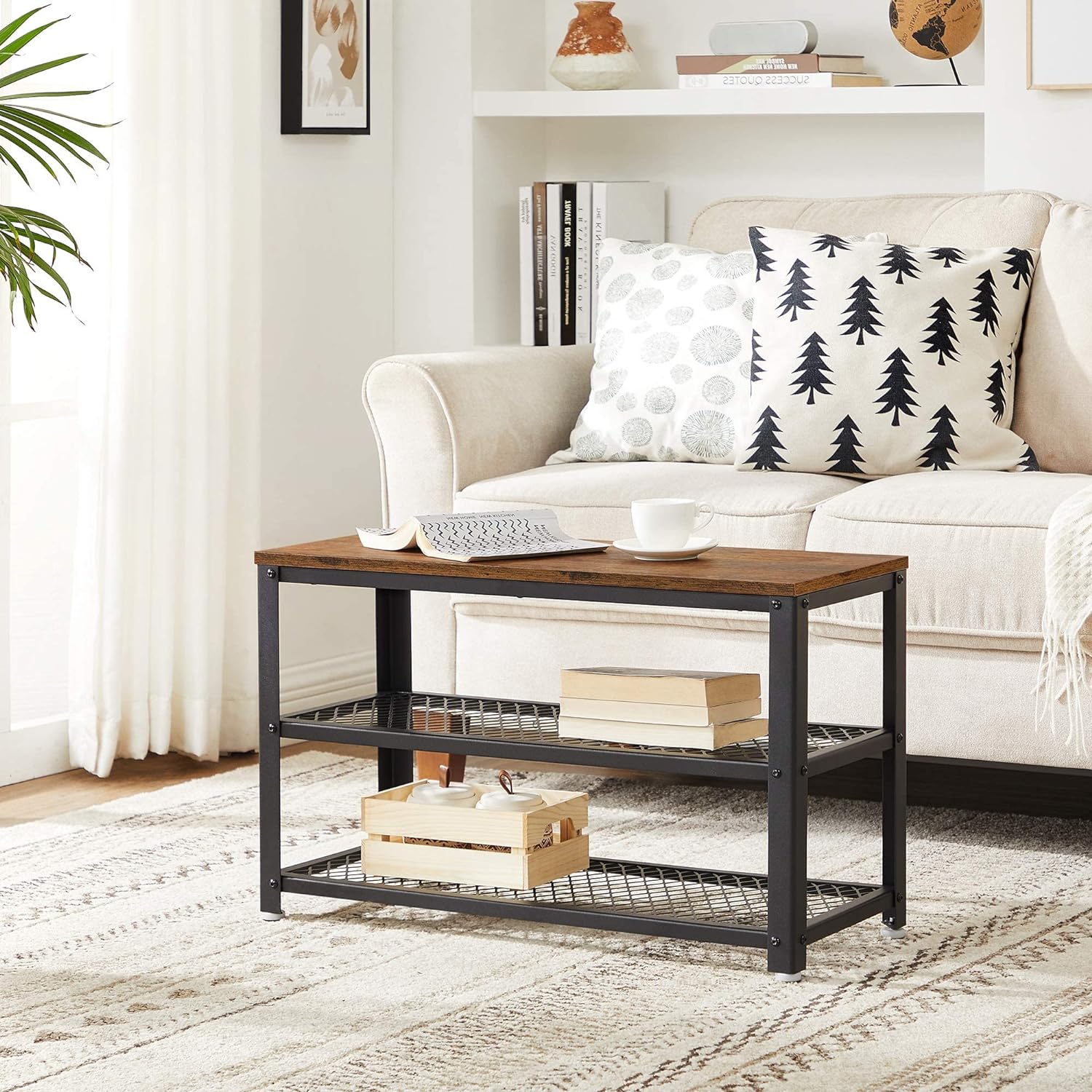 VASAGLE Raft pentru pantofi cu 2 polite, 73x30x45cm, otel, stil industrial, maro rustic si negru