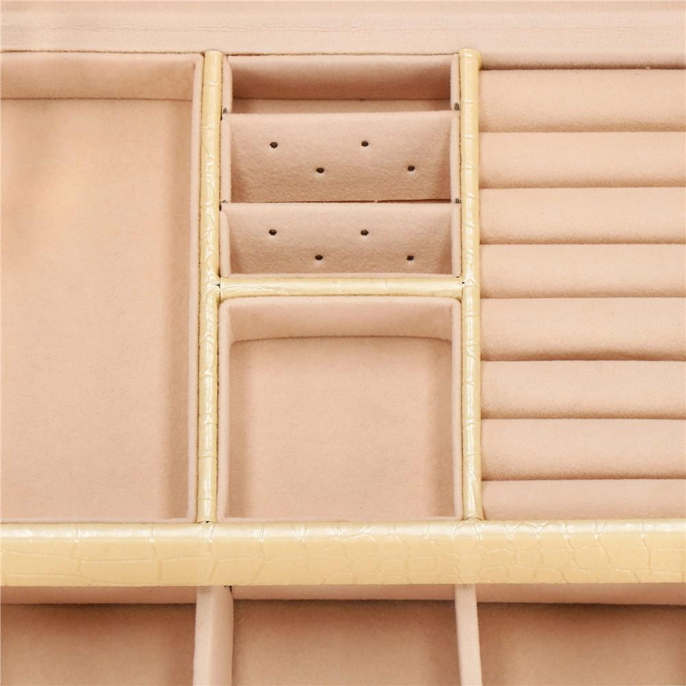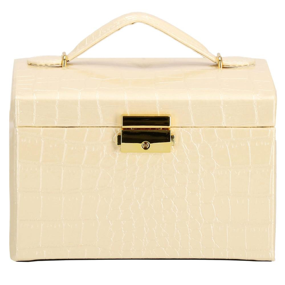 (DL) Cutie depozitare si organizare bijuterii, MDF, piele ecologica si velur, 17,5 x 14 x 12,5cm, crem