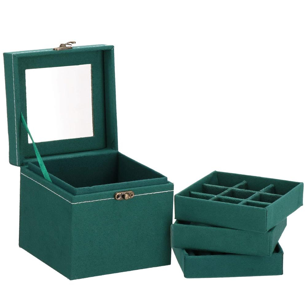 (DL) Cutie depozitare si organizare bijuterii, velur, 12x 12 x 12 cm, verde
