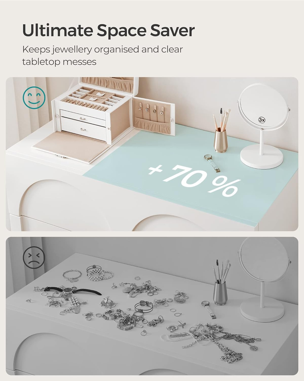 Culoare: Alb Marca: Songmics Material: piele din piele + cadru din fibra de densitate medie + catifea Stil: Modern Caracteristica speciala: oglinda, lacat, portabil...