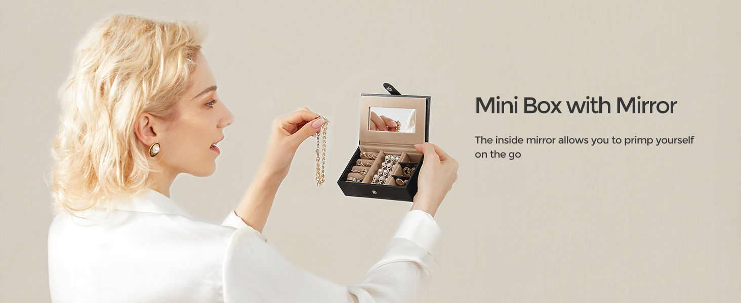 Culoare: Negru Marca: Songmics Material: piele din piele + cadru din fibra de densitate medie + catifea Stil: Modern Caracteristica speciala: oglinda, lacat, portabil Dimensiunile produsului: 18D x 26W x 17H centimetri Forma: Dreptunghiular Despre acest articol Compartimente separate, buzunare de catifea, deschideri pentru cercei cu stifturi, fante pentru inele, perne pentru ceasuri, carlige laterale pentru agatarea colierelor fara incurcaturi — aceasta cutie de bijuterii cu 3 niveluri ofera spatiu de depozitare pentru diversele tale bijuterii. Mini husa de calatorie separata: Acest organizator de bijuterii vine cu o mini cutie de bijuterii de calatorie, care este perfecta pentru a aduce cateva piese in calatorie. Carcasa mini are si o oglinda. Lacat si maner practice: Aceasta cutie de bijuterii se incuie cu 2 chei pentru a va pastra obiectele de valoare in siguranta si la indemana; manerul de pe capac va permite sa transportati cu usurinta cutia de bijuterii oriunde doriti. Calitate: Suprafete netede din PU, corp solid din MDF, captuseala moale din catifea, cusaturi ingrijite - aceasta cutie de bijuterii care se poate incuia este solida si durabila pentru a va insoti pentru anii urmatori. Idee de cadou de lux: Daruiti acest organizator de bijuterii elegant si bine realizat celor dragi de ziua lor de nastere sau aniversare pentru a le surprinde! Sau, rasfatati-va cu aceasta fermecatoare cutie de bijuterii - o meriti!