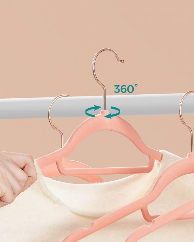 SONGMICS Set de 50 de umerase pentru haine, anti-alunecare cu catifea, bara de cravata si carlig pivotant, 43,5 cm, roz