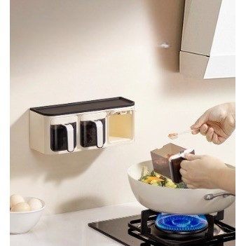 Organizator modern de condimente cu compartimente - Set depozitare cu 3 compartimente