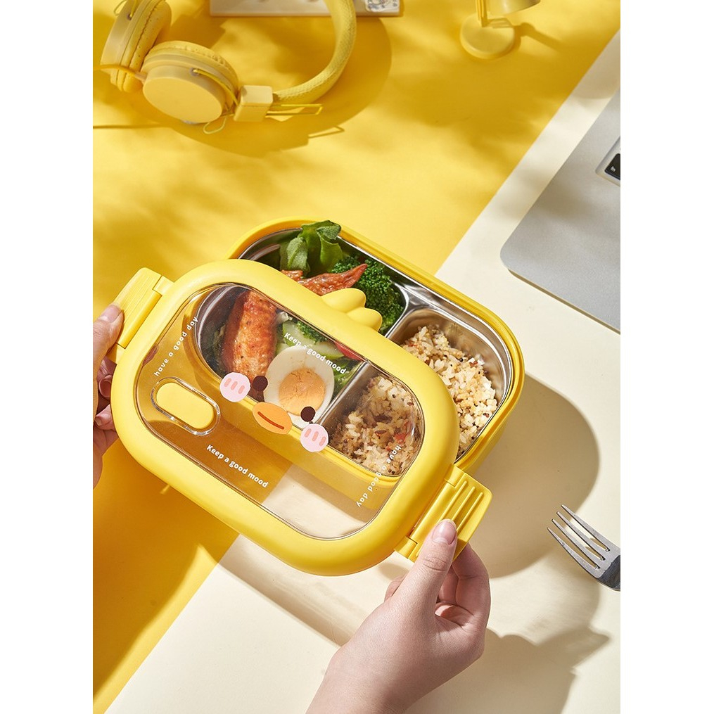 Cutie pentru Pranz sau Gustari, , cu Doua Compartimente, Model Ratusca, pentru Copii si Adulti, Etansare, PP, Perfect pentru Scoala si Birou, 1000 mL, 22.5x14.5x8 cm, Galben