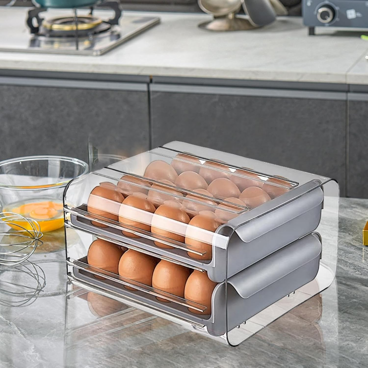 Suport pentru Ouă , Strat Dublu, Capacitate 32 de Ouă, 23.5 x 21.5 cm, din Plastic