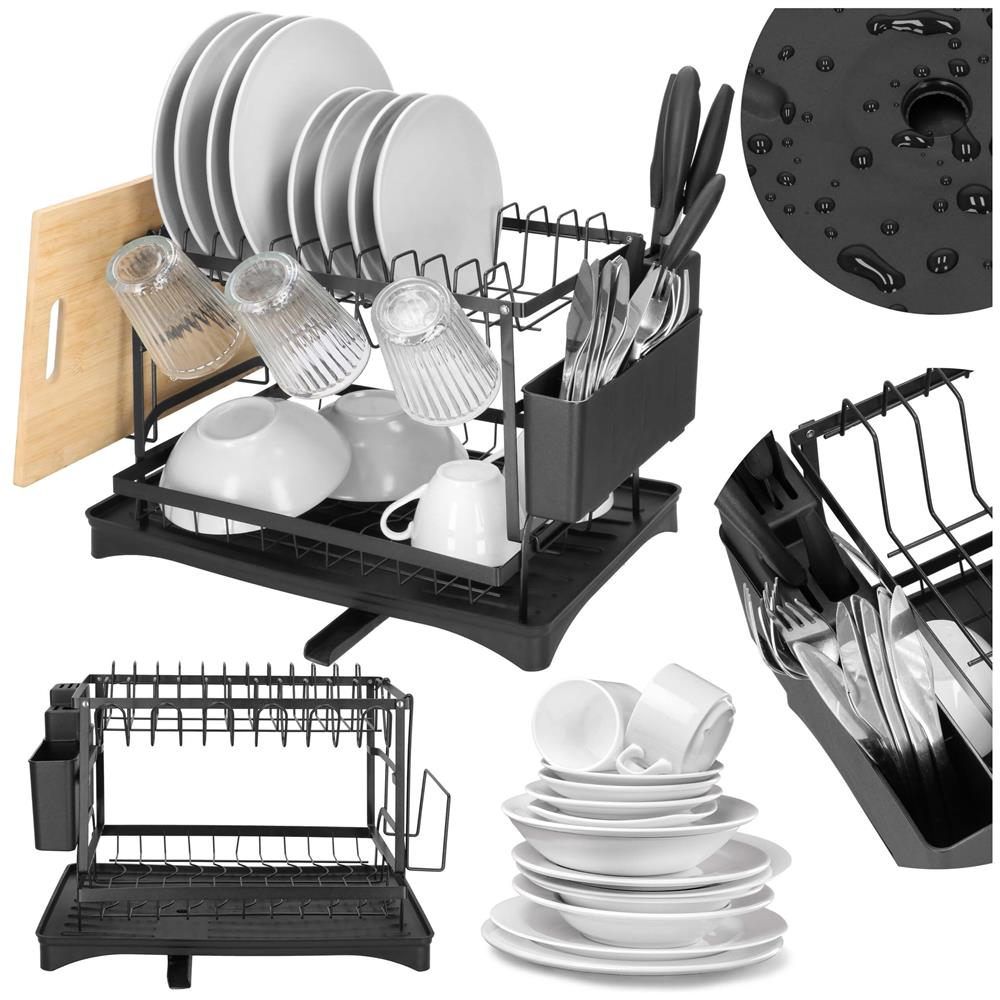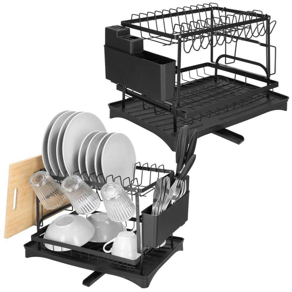 Suport vase 2 niveluri cu tava scurgere si suport tacamuri, 42x30x31,5 cm, negru