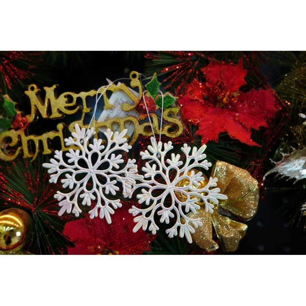 Ornament brad de Craciun, Perlat, in forma de Fulg de nea, 10 cm x 10 cm, Plastic,