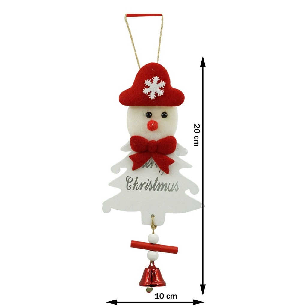 Omul de zapada este confectionat din lemn, poate fi agatat si are atasat un clopotel mic.