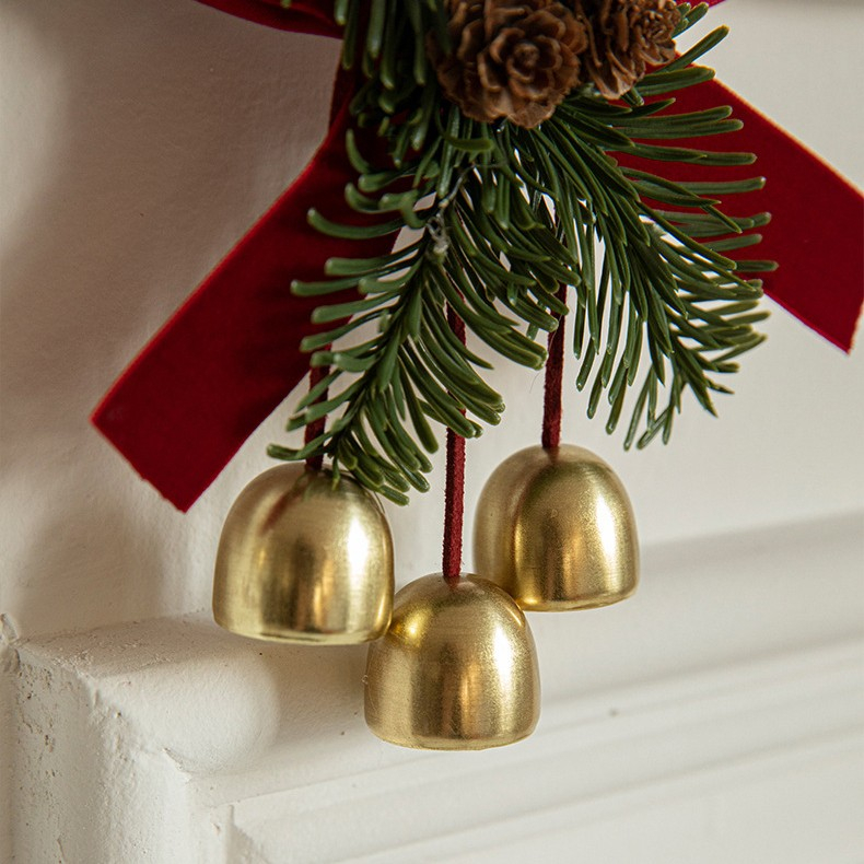 Accente elegante: clopotelul auriu adauga un strop de stralucire, in timp ce conurile de brad confera un aspect rustic si autentic.