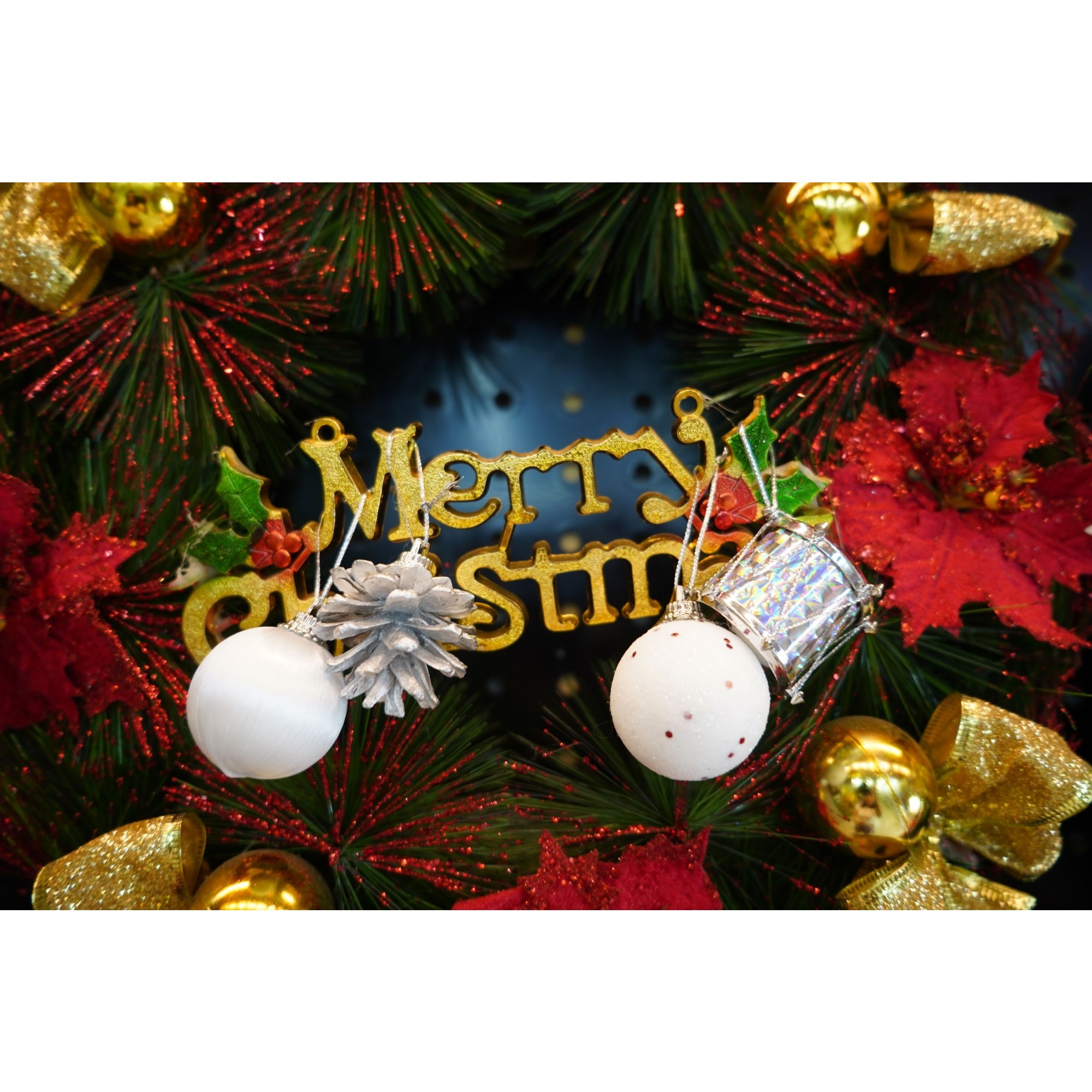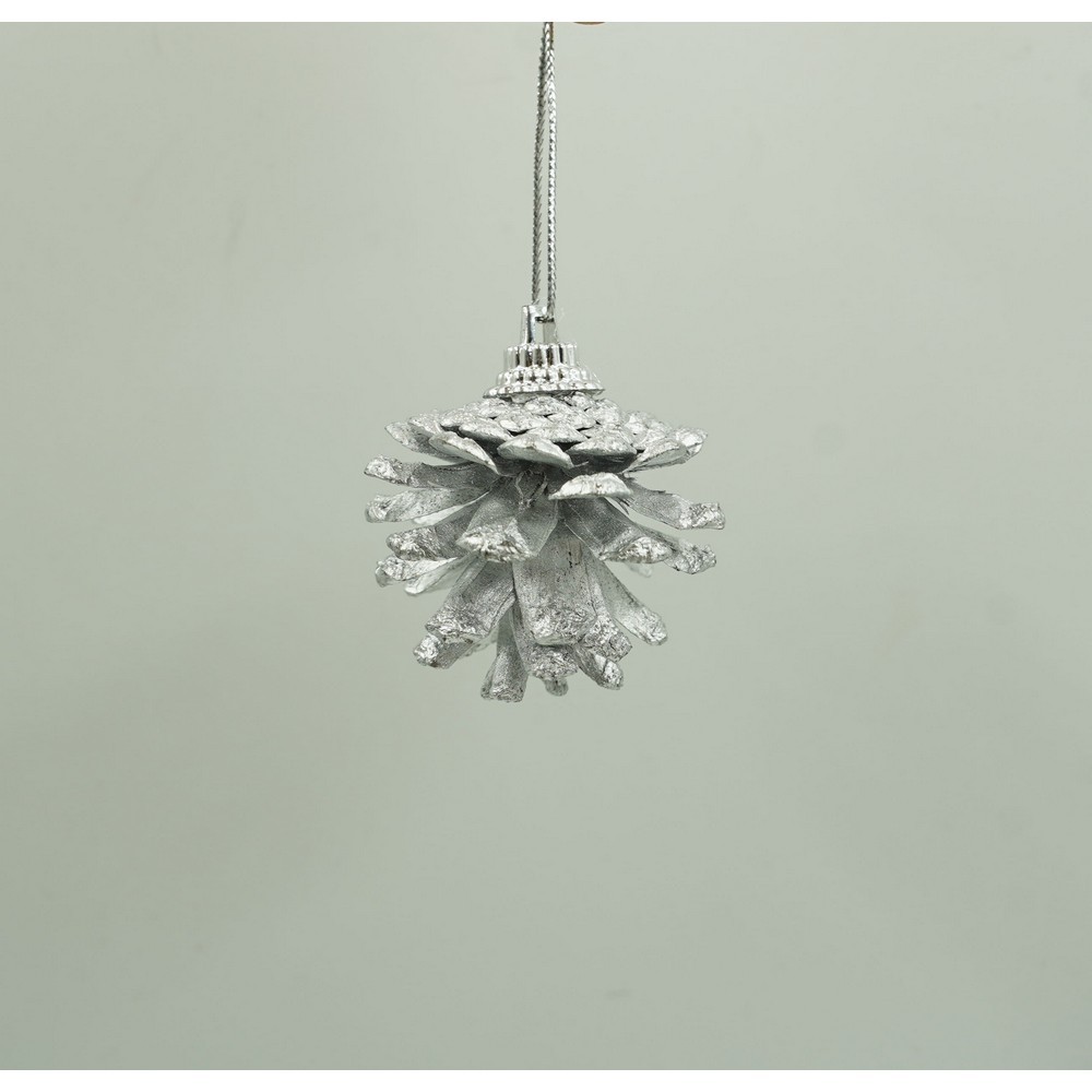 Set de 12 ornamente de brad, , de tip Glob, Alb/ Argintiu, din polistiren, cu finisaj sclipitor , cutie 4 cm adancime x 20 cm inaltime x 12 cm lungime)