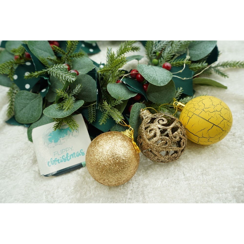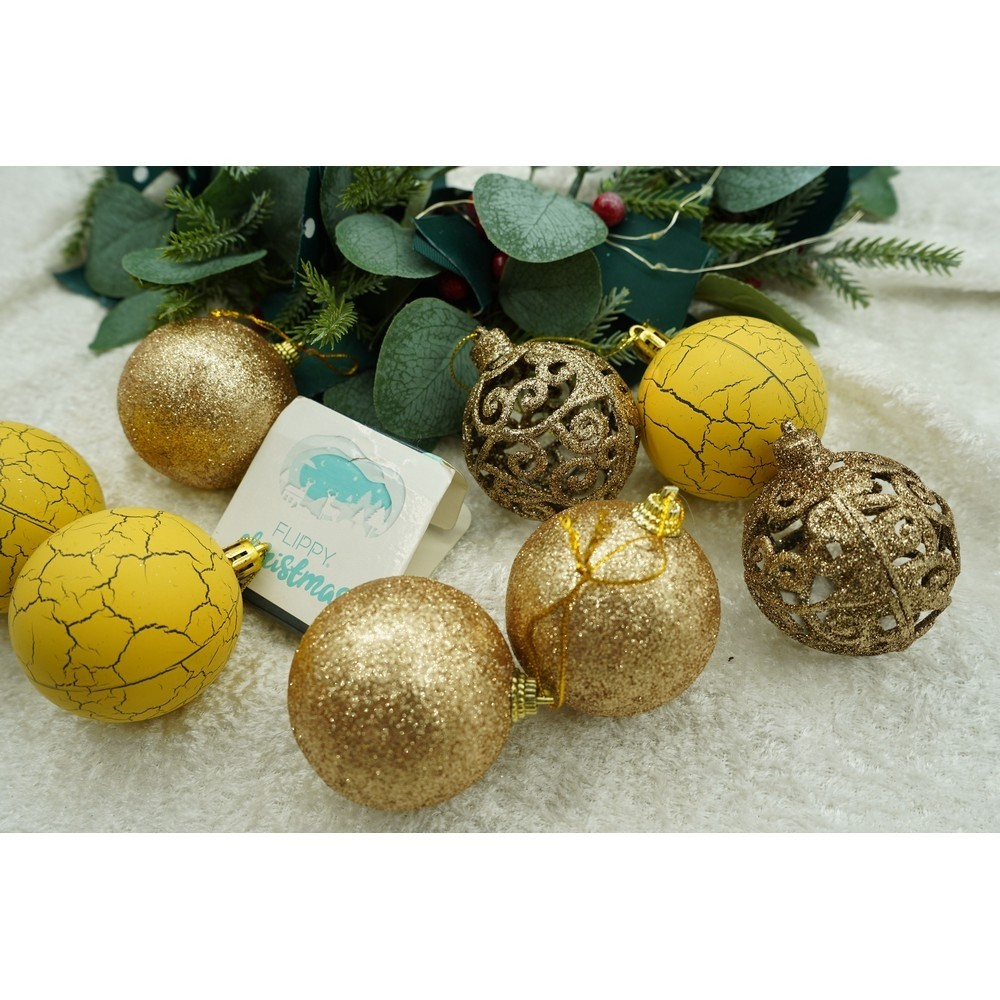 Set de 12 ornamente de brad, , de tip Glob, Auriu/ Galben, din plastic, cu finisaj sclipitor , cutie 6 cm adancime x 30 cm inaltime x 18 cm lungime)