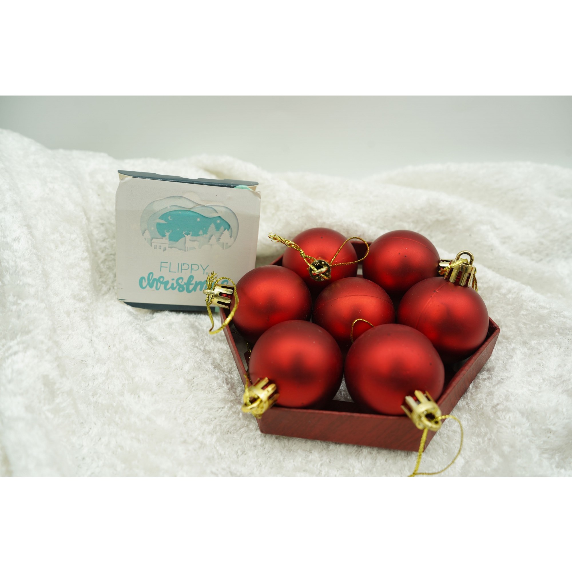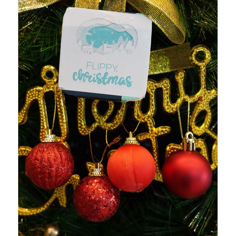 Set de 35 ornamente de brad, , de tip Glob, Rosu, din polistiren, cu finisaj sclipitor , cutie 11 cm adancime x 19 cm inaltime x 11 cm lungime)