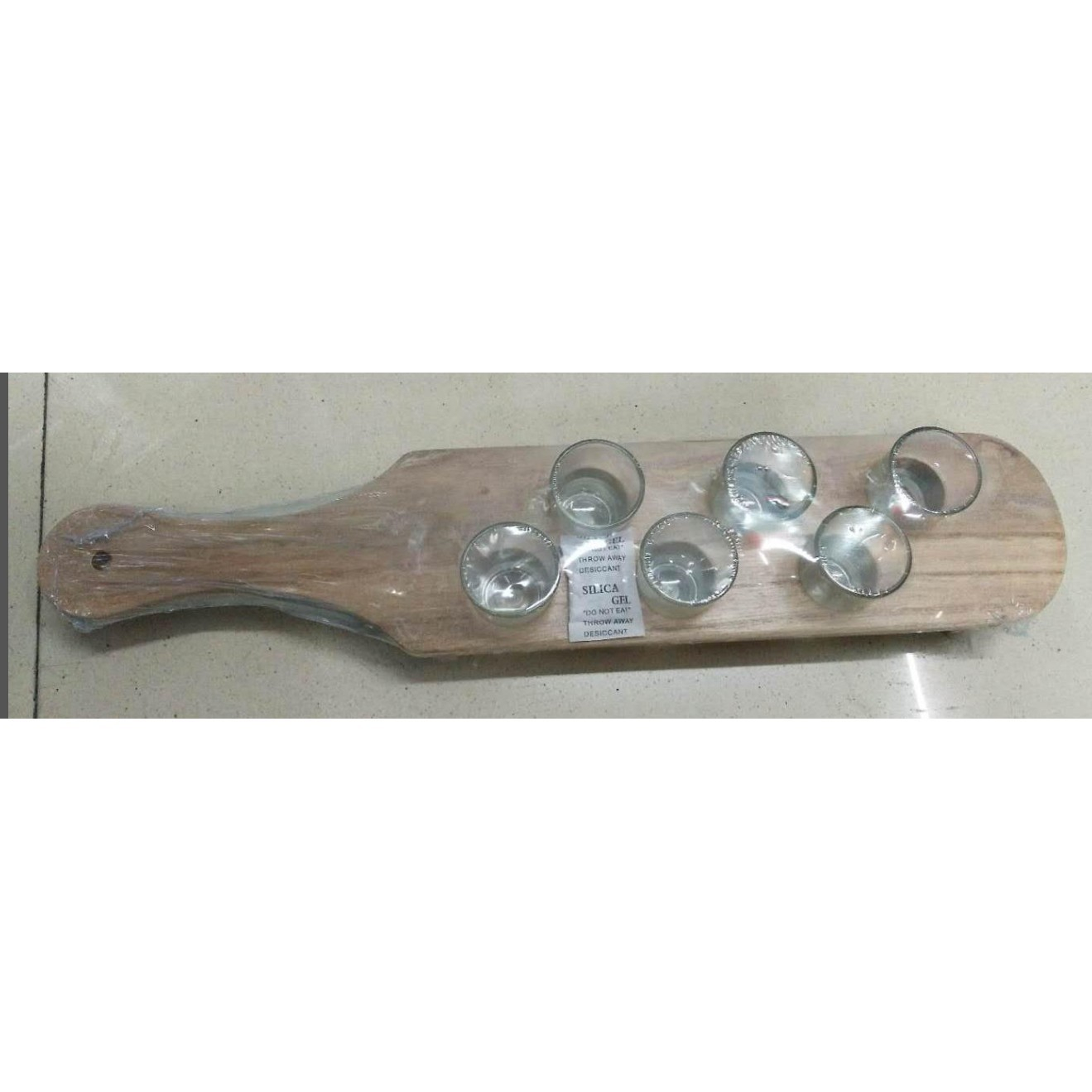 3. Suport din Lemn - Organizare si Prezentare Impecabila: Setul vine cu un suport elegant din lemn, care nu doar ofera un loc de depozitare pentru pahare, ci si un aspect estetic deosebit, facilitand prezentarea lor intr-un mod ordonat si placut ochiului.