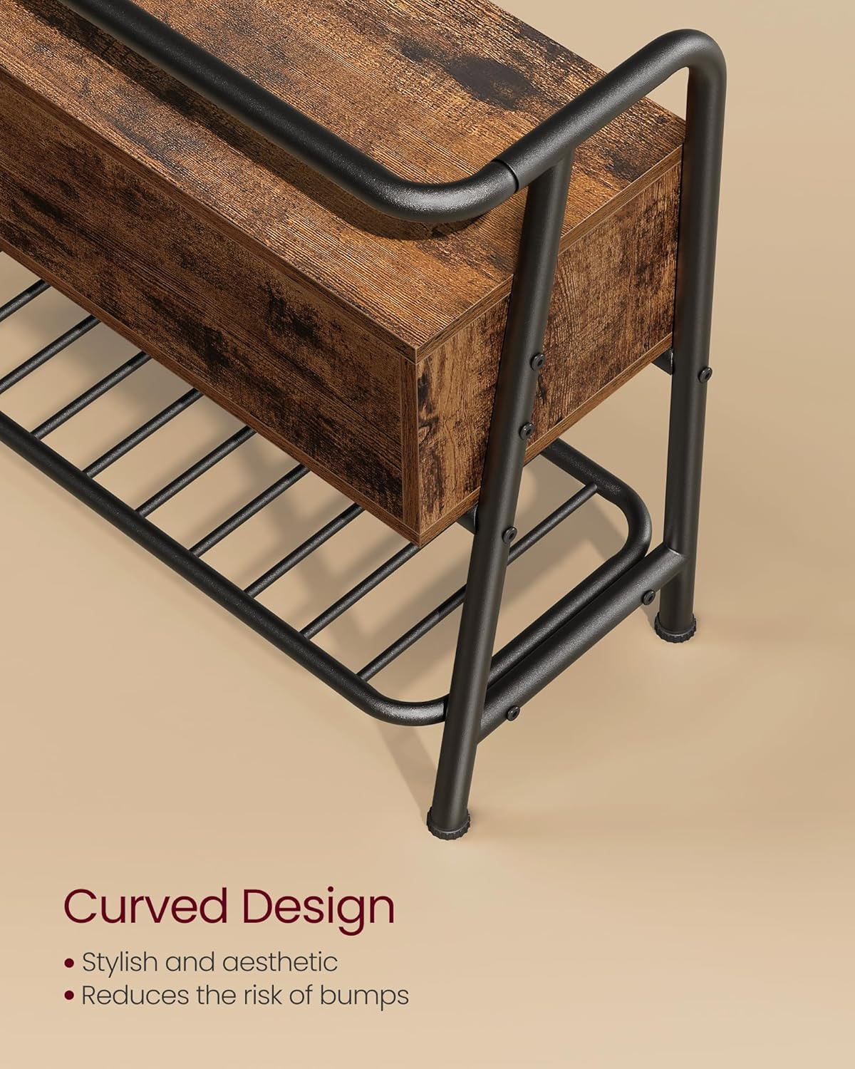 Specificatii: Culoare: Maro rustic, Negru cerneala Material: Placi aglomerate, otel Dimensiunea produsului: 30 x 80 x 63.5 cm Max. Capacitate de greutate statica totala: 136 kg Despre acest articol Cu o spatiere de 10 cm in partea de jos si 16 cm in mijloc, aceasta banca ofera spatiu pentru 6 pana la 8 perechi de pantofi. Sertarul adanc de 17 cm ofera spatiu amplu de depozitare, in timp ce partea de sus este perfecta pentru gentile de mana sau accesorii.Cu manerul sau decupat, acest sertar spatios este usor de deschis. Ideal pentru depozitarea obiectelor mici, cum ar fi cheile si portofelele, punand capat cautarilor disperate atunci cand va grabiti dimineata.Liniile delicat curbate ale acestei banci pentru pantofi nu ofera doar o estetica rafinata, ci va protejeaza si de lovituri.Fabricata din placi aglomerate si otel, aceasta banca pentru pantofi poate rezista pana la 136 kg, asigurand o durabilitate indelungata. Stati jos si schimbati pantofii in confort.Dincolo de scopul sau ca mobilier de intrare, poate fi folosit si ca banca de depozitare pentru sufrageria dvs. sau ca banca de sfarsit de pat pentru dormitorul dvs. Mentineti interiorul dvs. organizat si elegant.