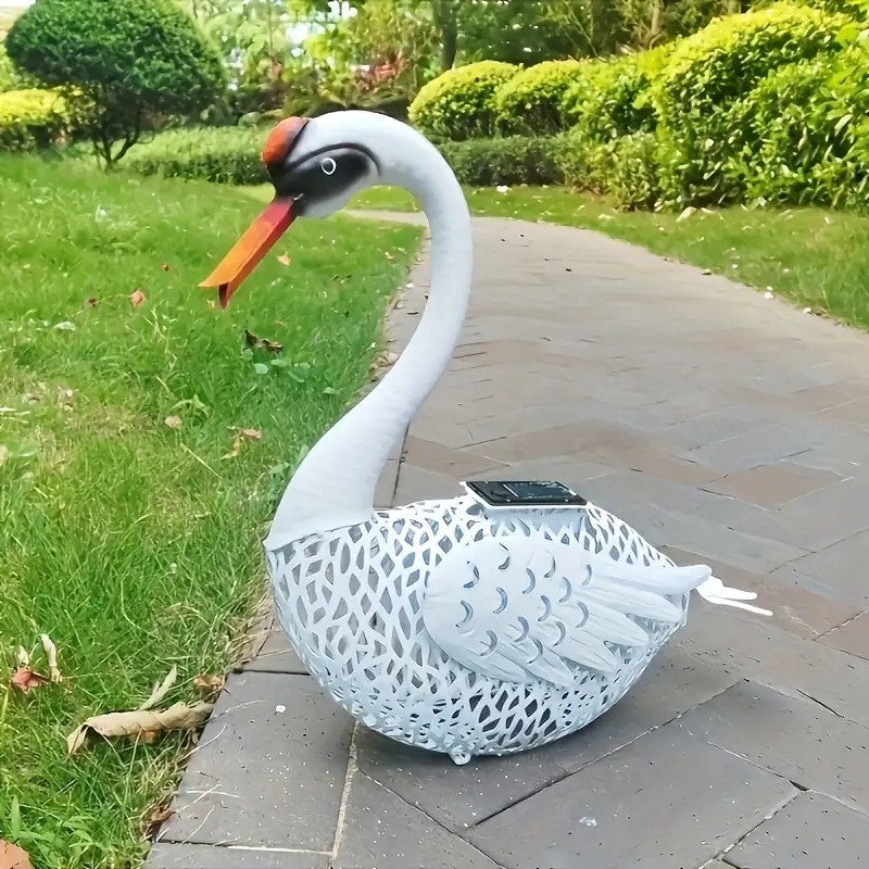 Aceasta decoratiune de gradina in forma de lebada imbina eleganta unui ornament clasic cu functionalitatea unei lampi solare LED. Este ideala pentru a adauga un plus de frumusete si lumina ambientala in gradina, curte sau terasa.