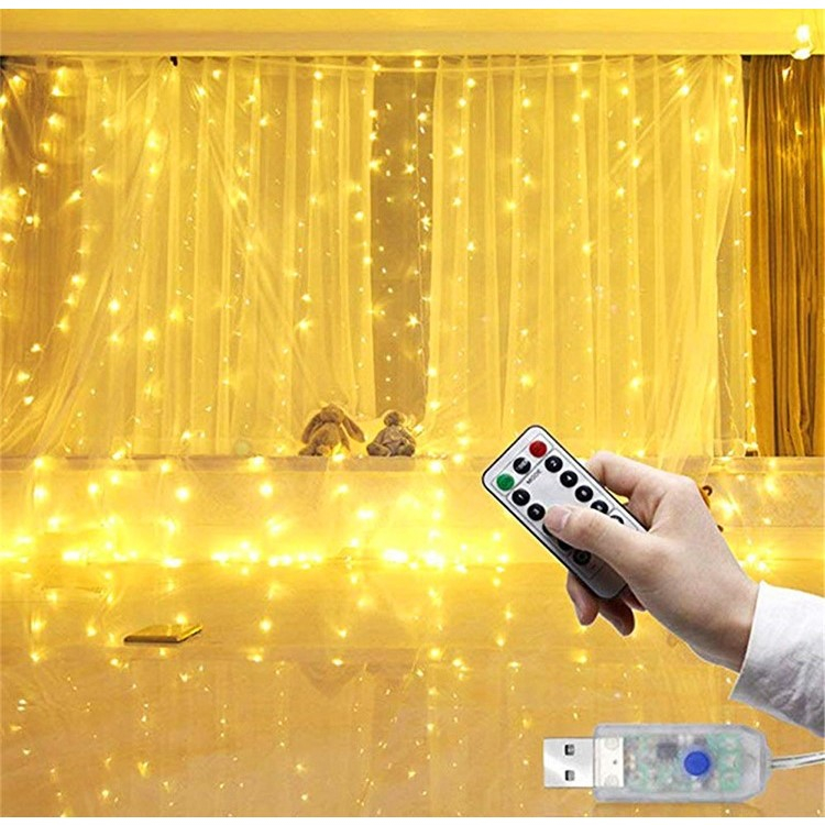 Instalatie Craciun, Tip Perdea IP44, 3m x 1m, 100 Led-uri, Multicolor, USB si telecomanda cu 8 functii