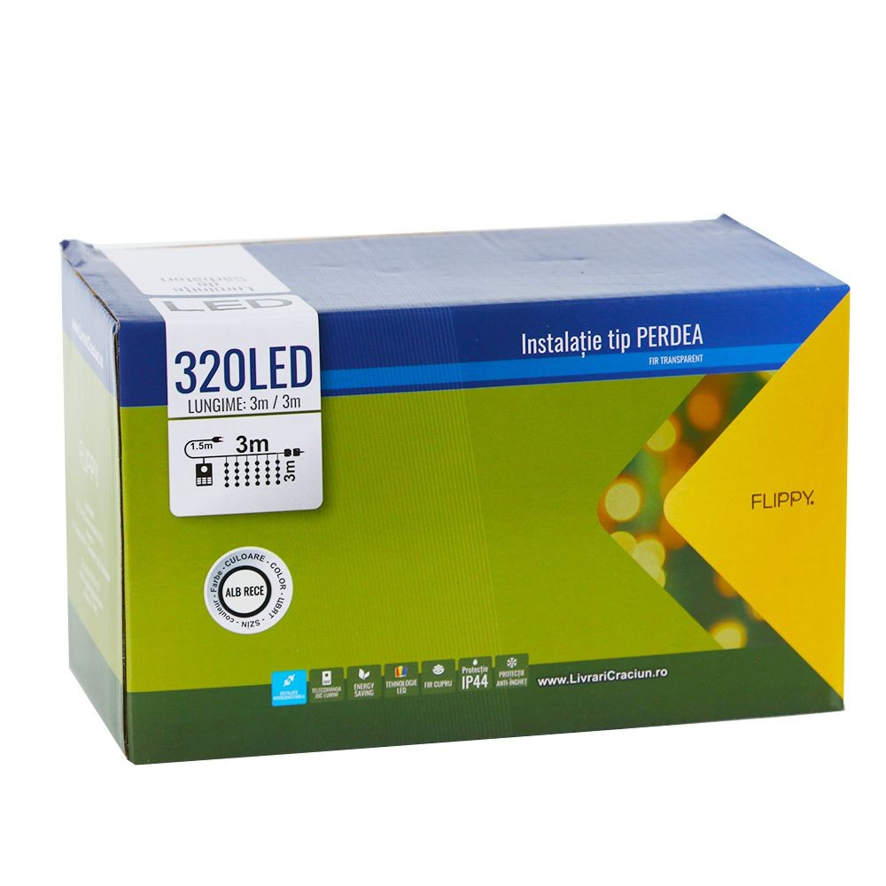Instalatia este de tip Perdea si se foloseste de obicei la decorarea caselor, ferestrelor, peretilor, zidurilor, gardurilor sau la streasina. Cablul de alimentare este de 1.5m, lucru ce permite un acces mai facil la priza.