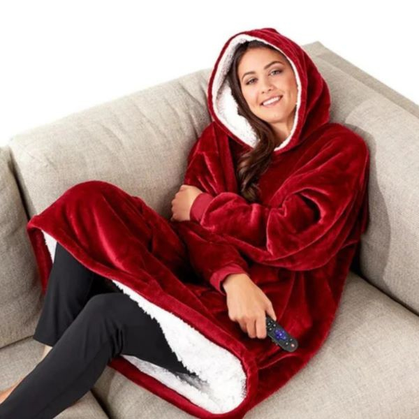 Un pulover și o pătură în același produs, confortabil și călduros, care vă va ține cald în zilele reci de iarnă