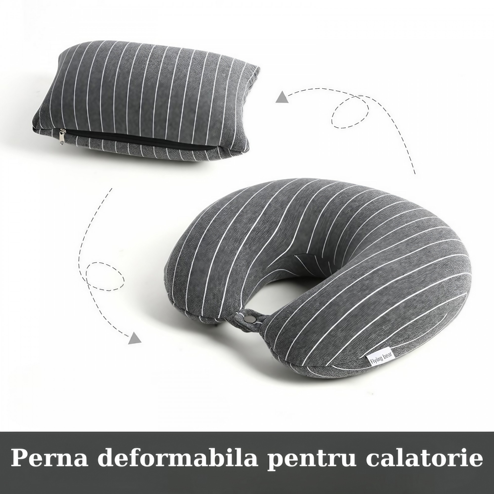 Perna de calatorie este o pernă flexibilă și versatilă, care poate fi modelată în diferite forme pentru a oferi confort în diverse situații. Iată cum ai putea utiliza această pernă: