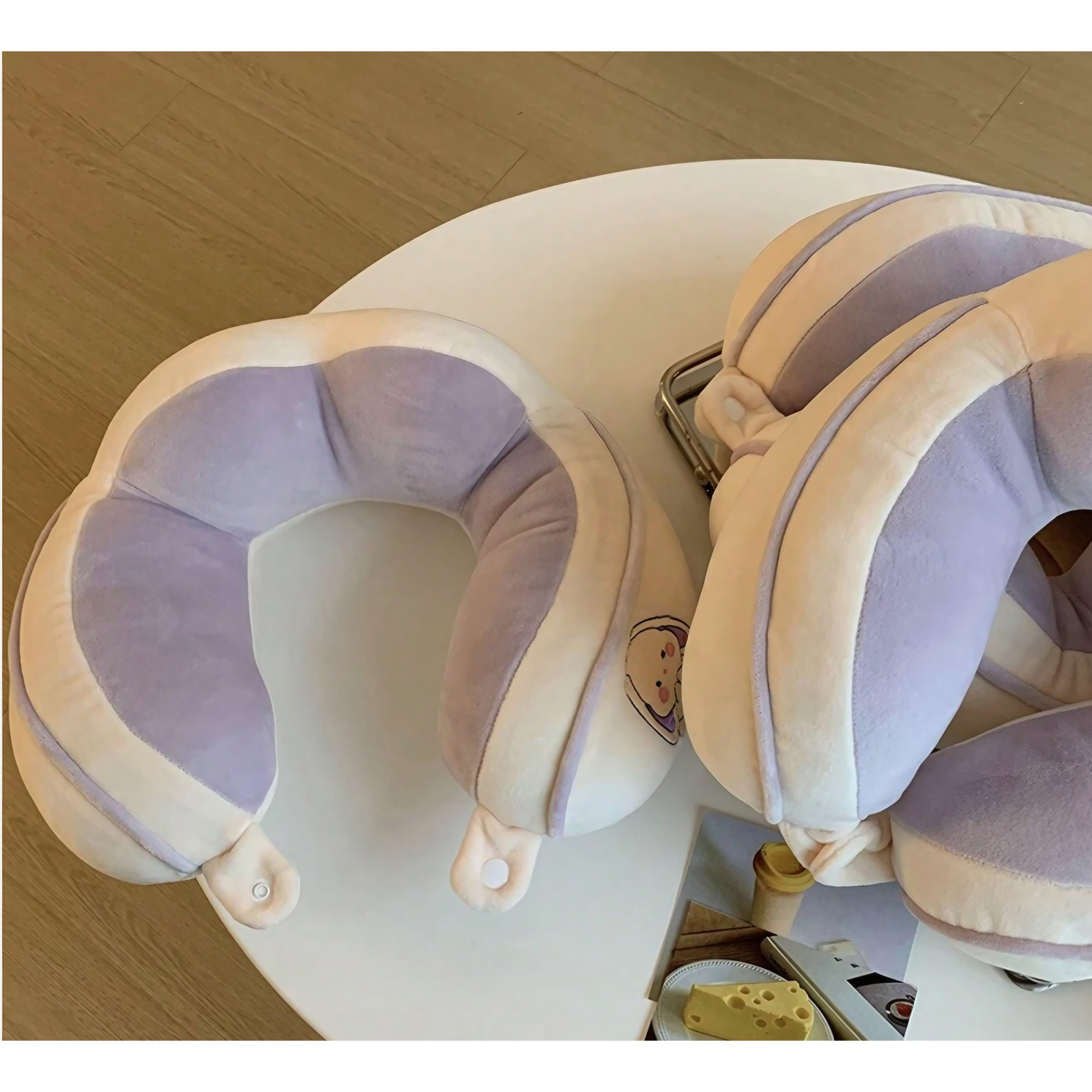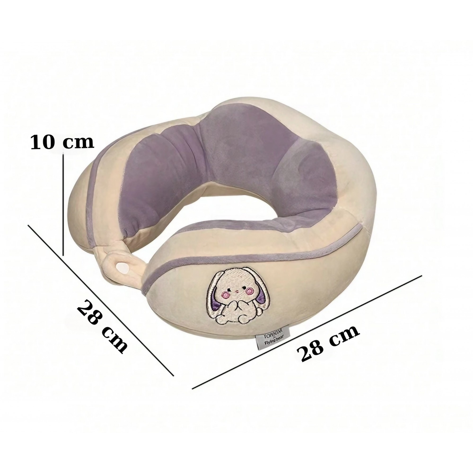Perna de Calatorie, , Pentru Gat si Cap, Umplutura din Bumbac, cu Model Brodat Iepure, Lila, reprezintă soluția perfectă pentru confortul în călătorii și momentele de relaxare.