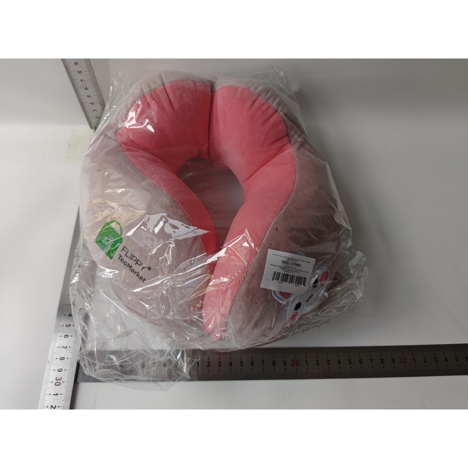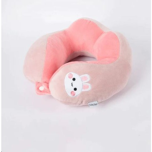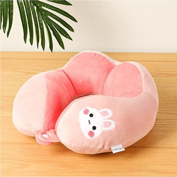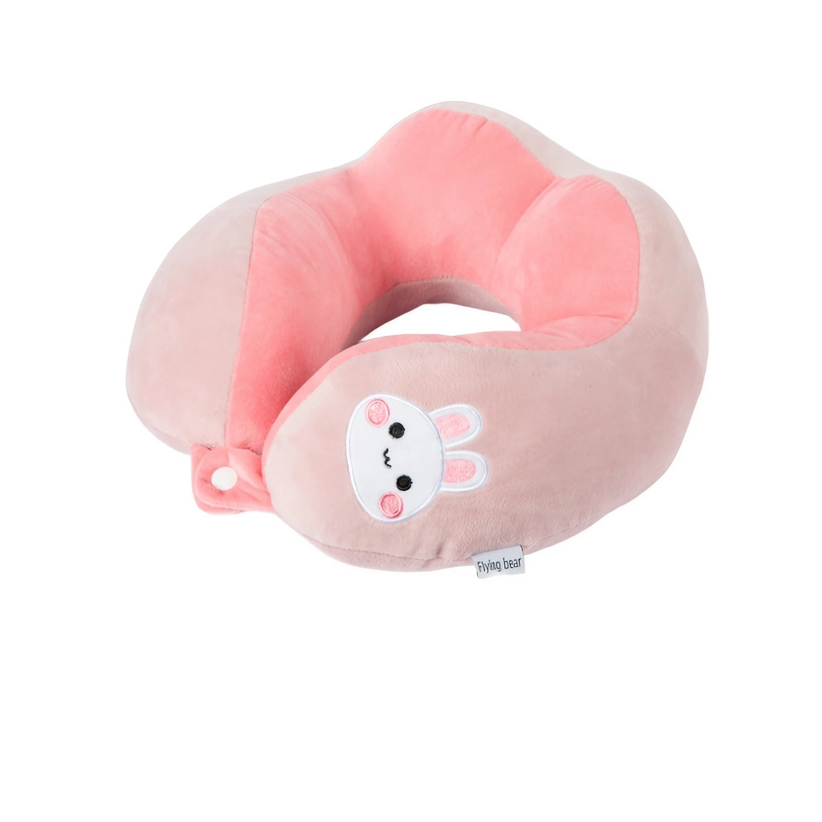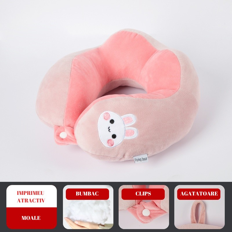 Perna de Calatorie, , Pentru Gat si Cap, Umplutura din Bumbac, 28x28x10 cm, cu Model Brodat Iepure, Roz