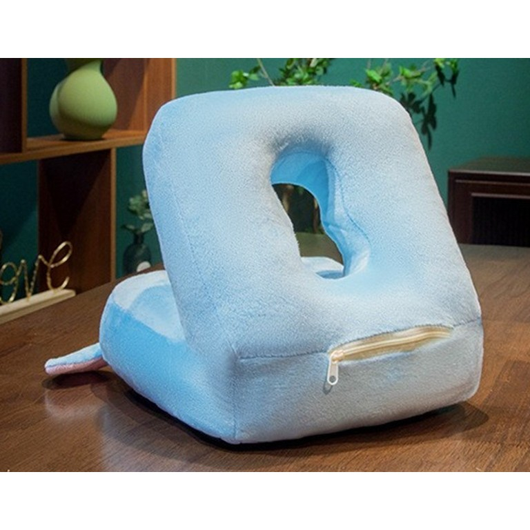 Perna din Spuma, , pentru Birou, Calatorii, Pauze, Model Elefant, Microfibra, 30x35x30 cm, Albastru