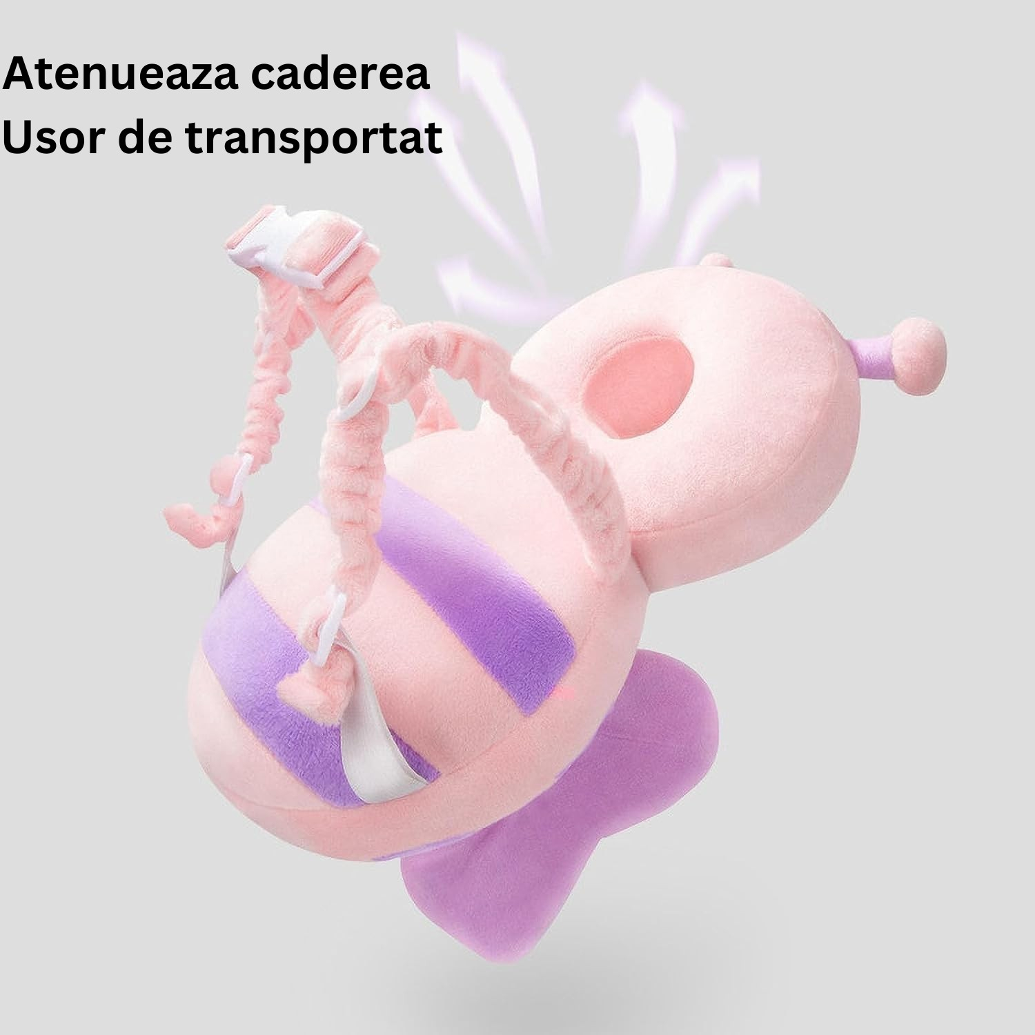 Perna tip Rucsac pentru Protectia Capului, , Tetiera tip Fluturas de Plus, pentru Bebelusi, 33x6x19 cm, Roz