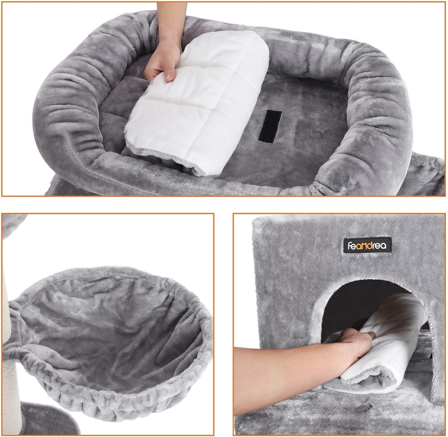 FEANDREA Ansamblu de joaca pentru pisici, tip copac, cu 2 culcusuri si ascunzatoare, 70x60x112cm, gri