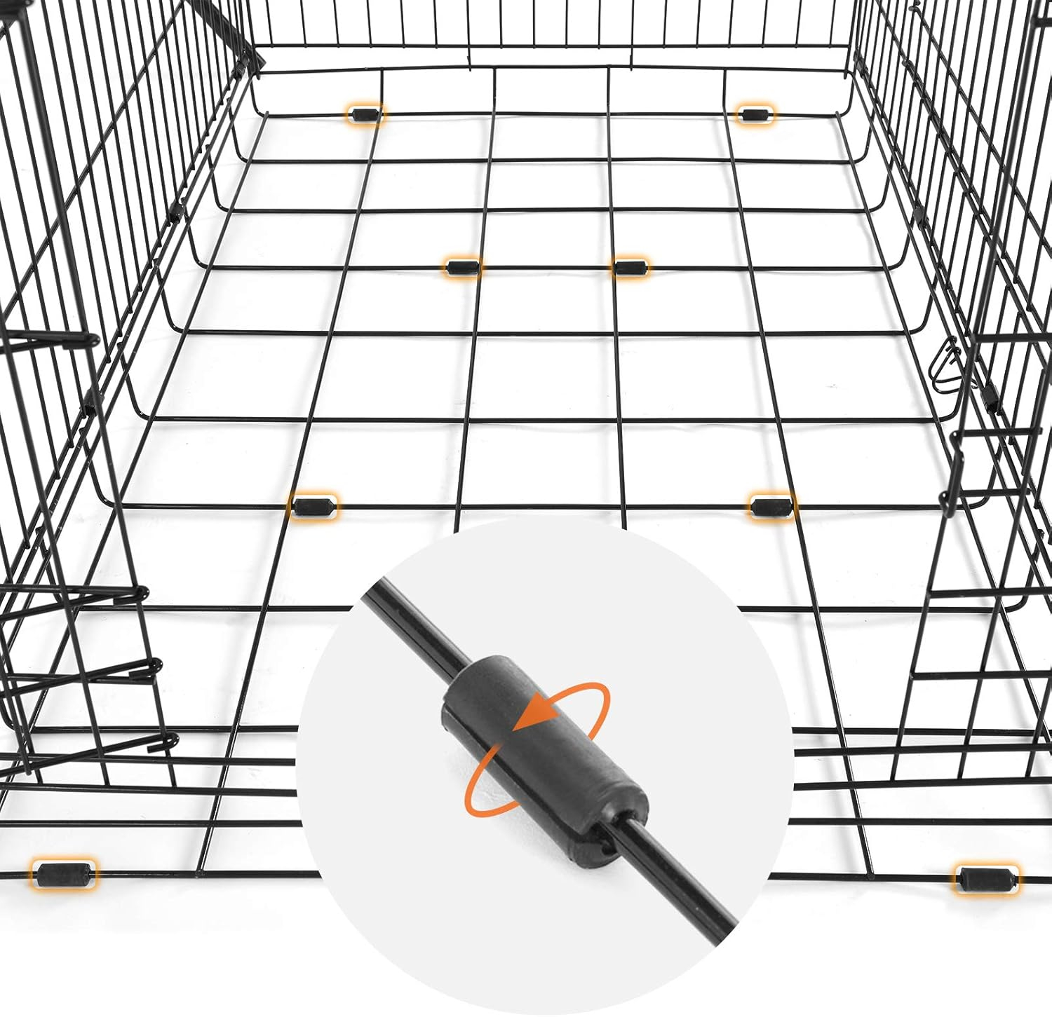 FEANDREA Cusca pentru animale, 2 usi, pliabila din metal, perete separator si tava detasabile, XL, 107x70x78cm, negru