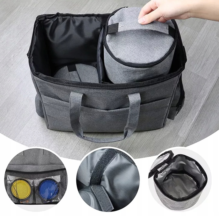Specificatii: 5 buzunare laterale (inclusiv buzunar pentru servetele, sticla de apa, etc). 1 compartiment principal cu separator detasabil si buzunar cu plasa pe clapeta toate materialele sunt usor de curatat maner confortabil si curea de umar reglabila si detasabila dimensiunile gentii (L/H/D): 42x38x17cm BENEFICII: Echipata cu buzunare: buzunar mare frontal cu inchidere magnetica, suport pentru sticla de apa, buzunar lateral cu fermoar, buzunar interior cu fermoar cu plasa si compartiment interior detasabil Maner captusit si curea de umar reglabila Compartiment principal cu perete despartitor detasabil cu Velcro Doua recipiente rotunde izolate cu fermoar pentru depozitarea alimentelor Manopera de inalta calitate Tesaturi lavabile si impermeabile Indeplineste cerintele companiilor aeriene Organizator ideal pentru accesoriile esentiale atunci cand calatoriti cu animalul dvs. de companie Ideala pentru a calatori cu cainele sau pisica dumneavoastra. In interiorul sacosei veti gasi accesoriile necesare pentru calatoriile cu animalul dvs. de companie. Specificatii tehnice: Material exterior: oxford 5 buzunare laterale (inclusiv buzunar pentru servetele, sticla de apa etc.). 1 compartiment principal cu separator detasabil si buzunar cu plasa pe clapeta. 2 recipiente izolate cu fermoar si manere pentru depozitarea hranei (dimensiuni 17x17x13cm) 2 boluri pliabile din silicon (13x13x5cm) paleta de hranire cu clema 15 saci pentru deseuri toate materialele sunt usor de curatat maner confortabil si curea de umar detasabila si reglabila lesa lunga de 120 cm + ham Dimensiuni: Lungimea curelei pentru stern: 17 cm Circumferinta gatului: 28-48cm Circumferinta custii in cel mai larg punct: 30-48 cm Dimensiuni geanta: (L/H/D): 42x32x20cm