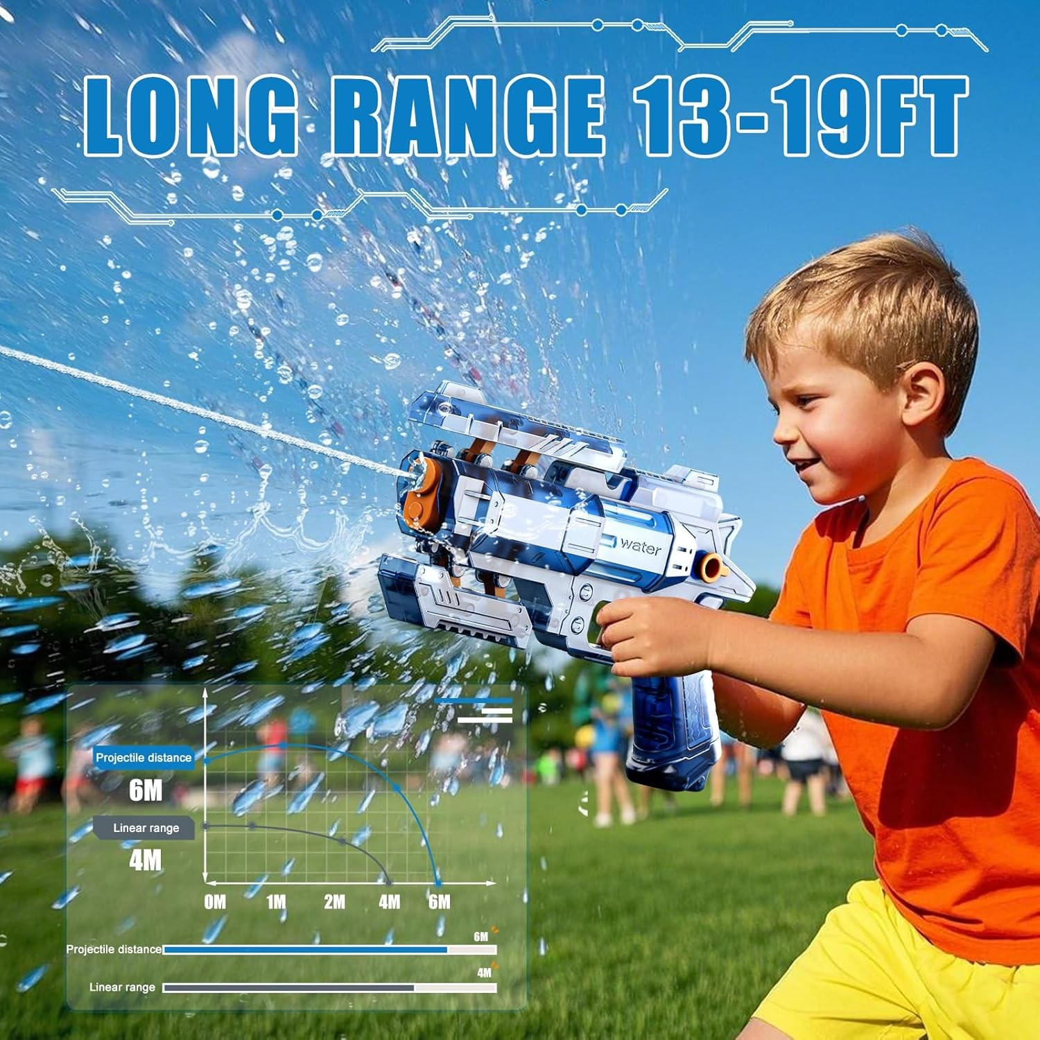Pregateste-te pentru ore intregi de distractie si aventura cu acest pistol de jucarie "S-Shooter"! Conceput pentru joaca sigura in interior sau in aer liber, acest blaster vibrant, in nuante de albastru si gri, este perfect pentru micii aventurieri care isi doresc sa intre in actiune.